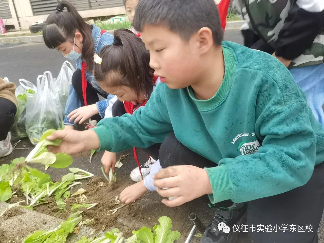 实小东区校“慧耕农场”旨在培养学生吃苦耐劳的精神品质,让学生感知传统农耕文化,体会种植的艰辛及丰收的喜悦。由各班认领种植,播种、浇水、施肥、除草、收获等都浸润着师生们的心血。活动当天,为保证及时将蔬菜送到老人们手中,师生志愿者们一早就来到校内“慧耕农场”采摘,绿油油的青菜、鲜嫩嫩的小白菜、水灵灵的紫菜......师生们全神贯注,而后又仔细地进行了清理分装。