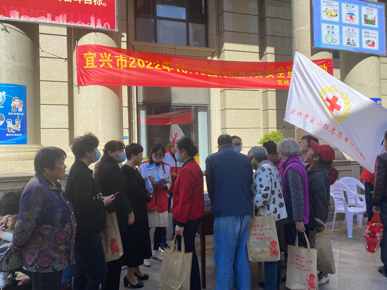 宜兴市红十字会向荆溪社区捐赠红十字急救箱,宜小红志愿者向社区居民发放应急救护、防灾减灾等宣传资料,普及防灾避险知识,提升群众生命安全意识。