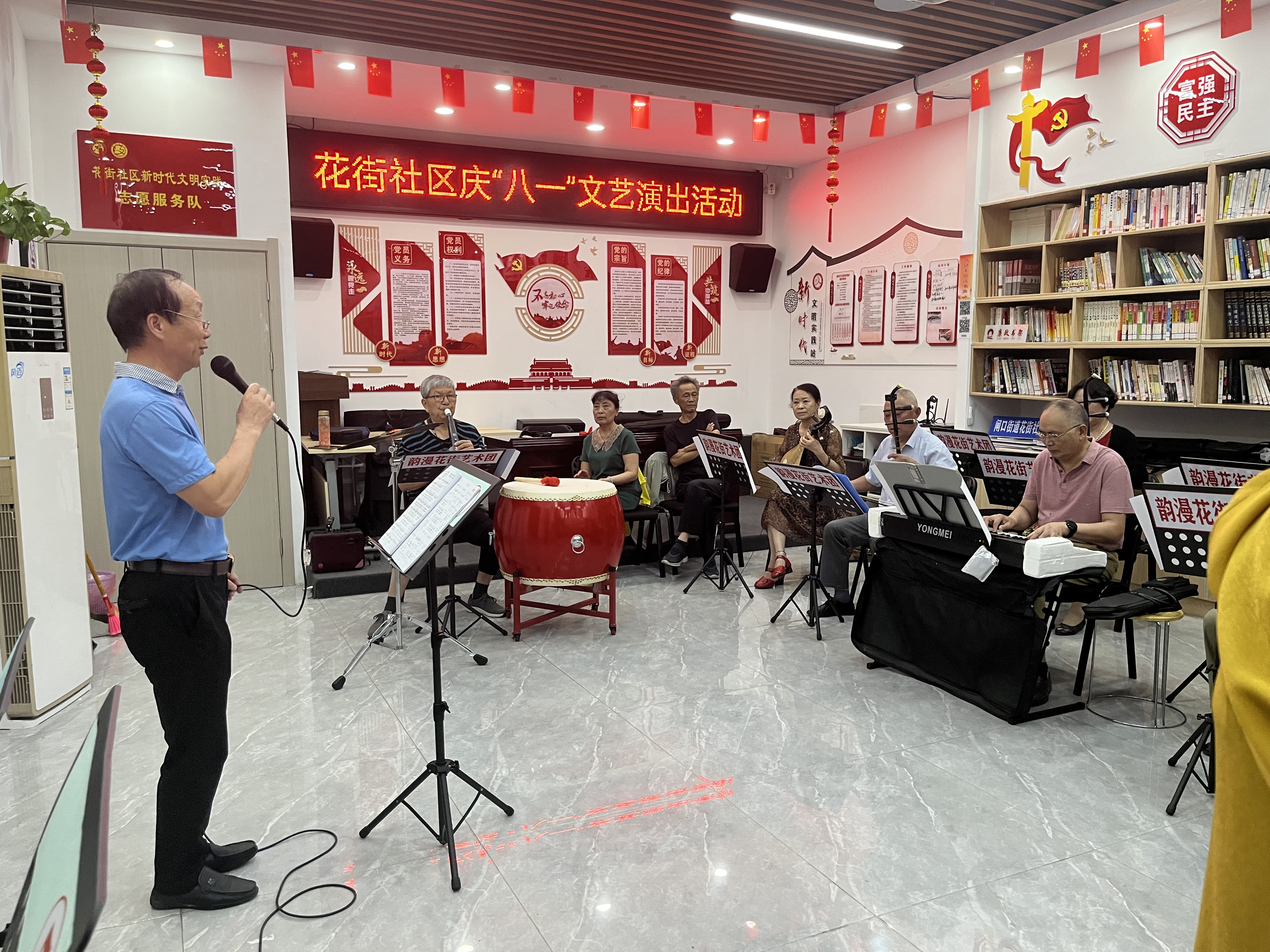 多方联动提升居民幸福感。社区以提高辖区居民文化素质,致力于帮助居民养成爱读书、会读书、读好书的良好习惯。社区打造了读书屋,设置共享书架并且配备了党史类、文学类、生活百科类、健康保健类、少年读物类、法律法规类等各类图书。每日居民们来到读书屋可以选择喜爱的图书进行阅读,定期开展读书分享会。社区吸纳清江浦非遗协会、爱心志愿者服务社、翰缘书院等社会组织积极参与社区治理,加强“三社联动”。组织辖区文化骨干力量,成立“韵漫花街艺术团”,结合传统节日开展丰富多彩的文体活动。与市老年大学、闸口街道社工站联合举办艺术培训班,鼓励居民参与其中,大大提升群众的幸福感。