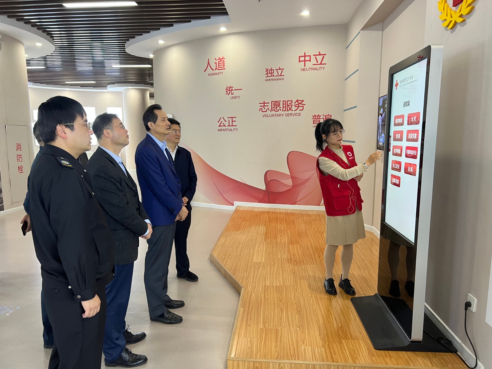 蒋来清一行先后来到市民急救体验馆(红十字志愿服务基地)、梁丰小学(西校区)、冶金园(锦丰镇)永新社区博爱家园,实地调研应急救护培训、省红十字示范学校工作以及博爱家园建设情况等。