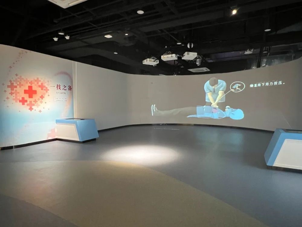 体验馆建筑面积约1200平方米,分别为序厅、“一生之旅”、“一技之备”、“一展未来”及多功能区5个展区,共29个展项,以“健康生活,执守一生”为主题,围绕“全生命周期”展示人的生理特点及规律,强化每个人是自己健康的第一责任人意识,让参观者在互动体验中认识和了解自己的生长发育或健康状况,唤起珍爱生命意识。其中“一技之备”展区作为太仓市民急救培训基地,以3D仿真场景渲染模拟火灾、溺水、交通意外和家庭危险等场景,告诉参观者如何在各种灾害场景中自救、互救和逃生的知识。