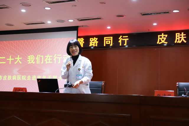 医疗美容科主任孙萍以图文对比的形式向大家展示了医院近年来求美者进行治疗的效果,并对老年人常见皮肤疾病误区进行了详细的阐述。