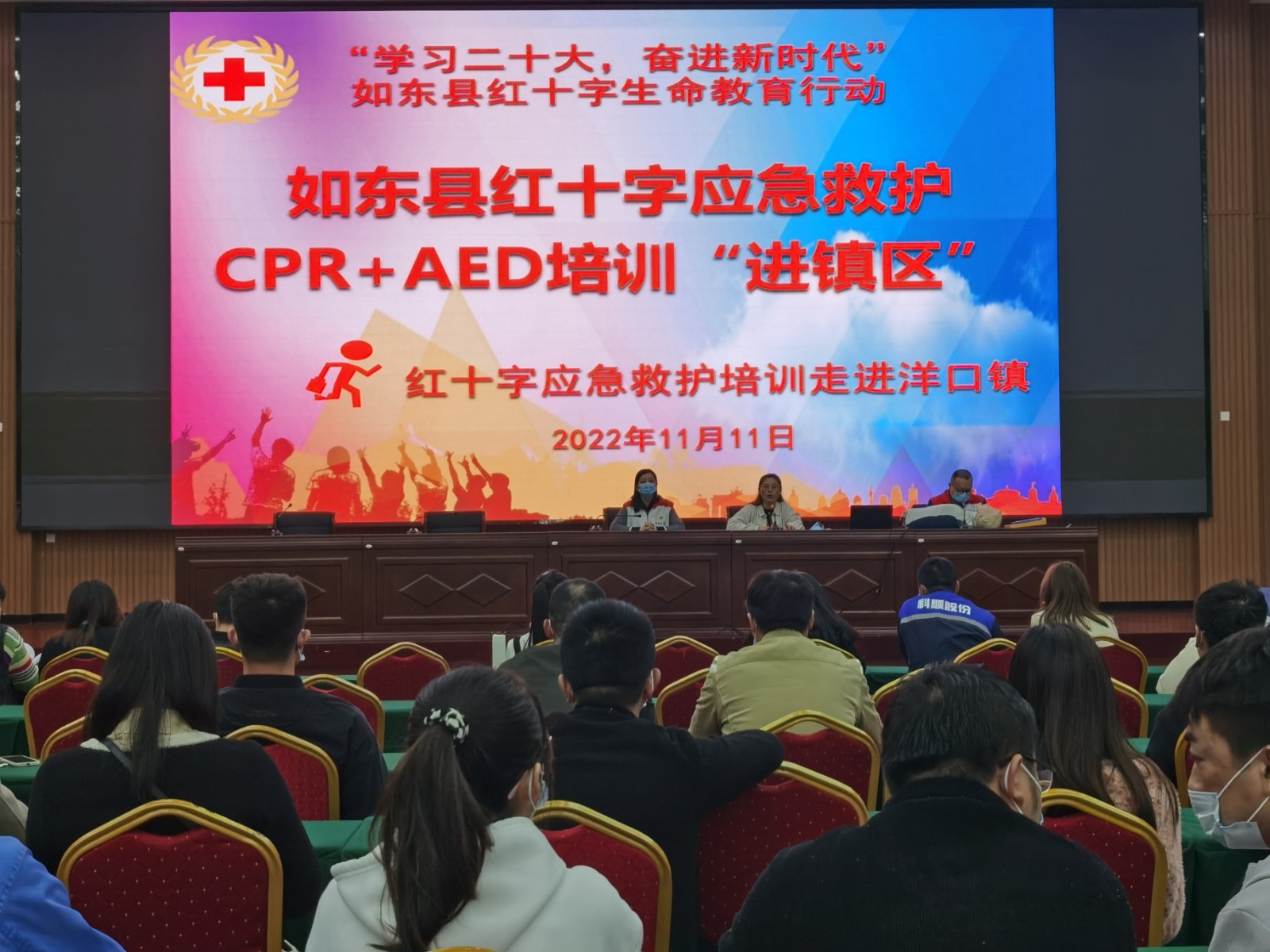 2022年11月11日,洋口镇红十字会组织辖区内企业员工50余人,在会议中心参加如东县红十字应急救护CPR+AED培训。此次培训旨在普及应急救护知识,让企业员工增强急救意识、急救技能和对意外伤害事件的应对能力,保护员工的生命安全,助力企业安全生产。学员们纷纷表示培训受益匪浅,在今后日常工作和生活中对保护自己和他人都具有十分重要的作用。