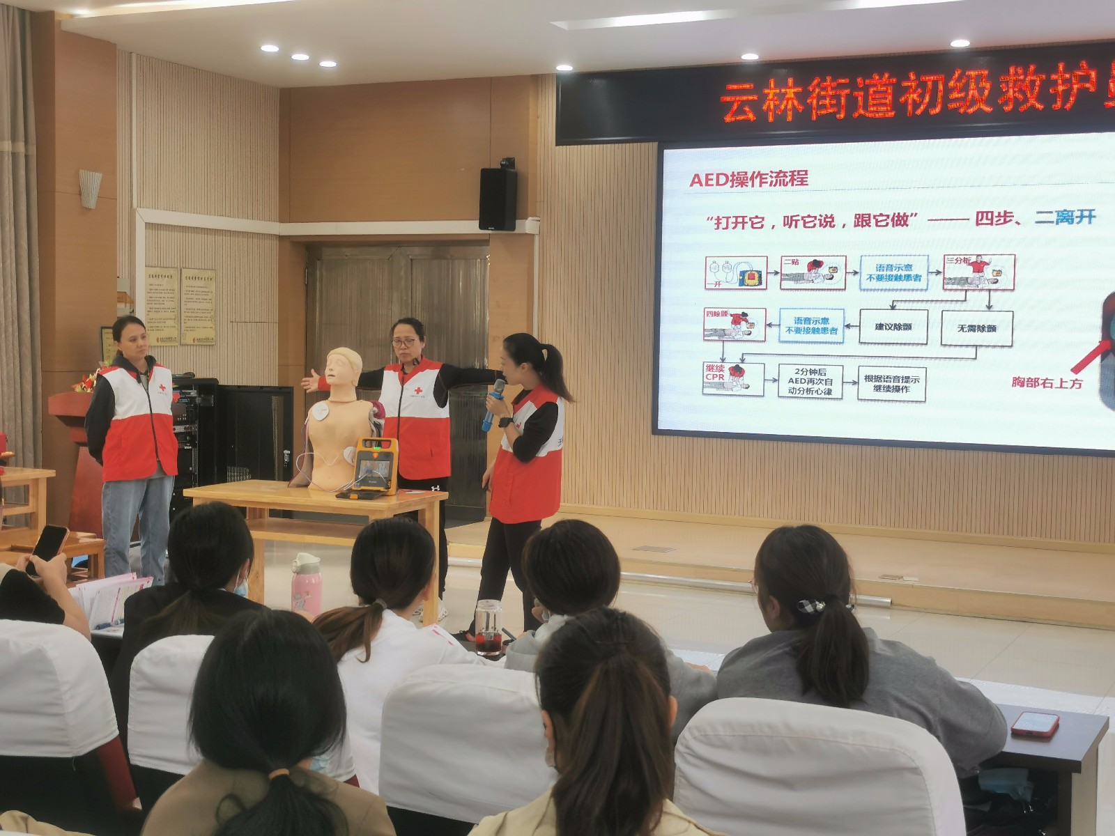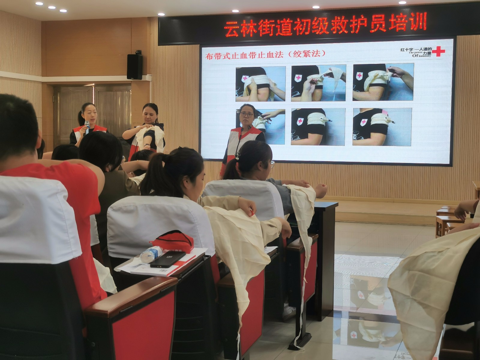 为进一步弘扬“人道、博爱、奉献”的红十字精神,增强辖区群众的应急救护意识和提高应急救护技能。近期,云林街道红十字会在无锡市云林实验小学举办了初级救护员培训班,学校教职工、街道工作人员、村(社区)居民、企业职工等50余人参加培训。