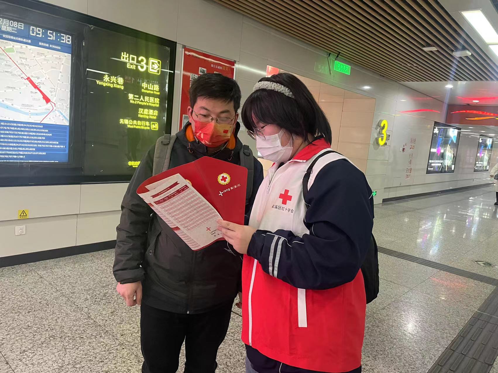 这次服务活动主要内容是宣传红十字应急救护知识及提供便民服务,红十字志愿者结合“梁溪红”宣传折页向沿街商铺和过往路人宣传讲解应急救护知识并提供辅助购票、乘车指引、防疫消杀等便民志愿服务。红十字志愿者陈琦说:“我是一名红十字志愿者,这是我第一次参加红十字志愿服务活动,希望能用我掌握的急救技能为居民出行保驾护航,同时为居民提供一份便利,一份温暖。我也希望有更多的人能和我们一起弘扬‘人道、博爱、奉献’的红十字精神,传递和谐、互助正能量。”