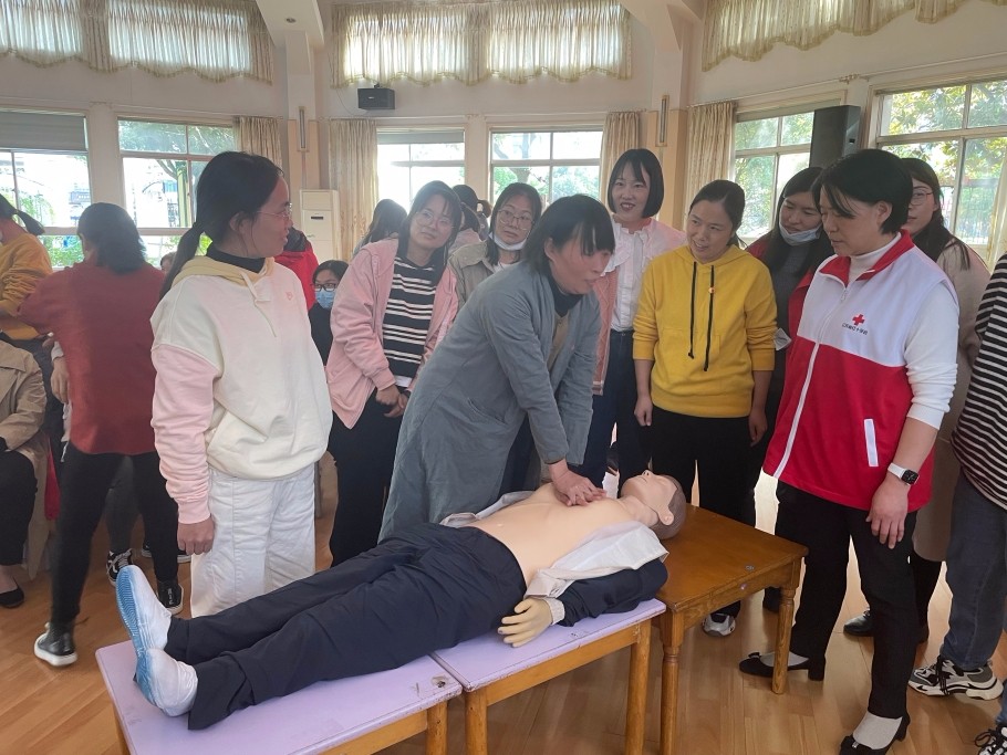 为提高学校师生自救互救能力,切实关爱人员的生命安全和健康,11月10日,华士镇红十字会在华士中心幼儿园组织开展初级救护员培训。