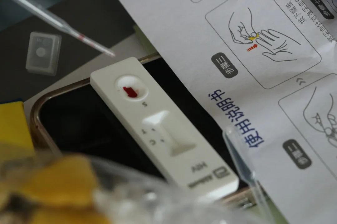 “艾滋病还能自检!”活动现场,主持人还为同学们发放检测试剂盒,只要在指尖上戳一滴血,就能检测艾滋病。