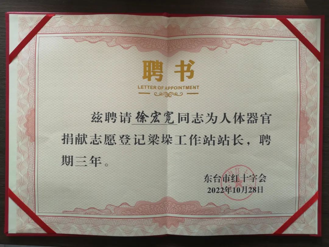 [盐城市]东台市首家人体器官捐献志愿登记乡镇工作站授牌成立