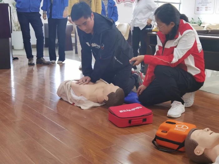 活动中,江苏省“五星级应急救护师”徐茂林,南京市应急救护主任导师史梅兰,两位老师通过“理论授课+实操模拟+实操考核”的教学方式,细致讲解了心肺复苏、自动体外除颤器使用、气道异物梗阻急救三项救护理论知识。随后,现场模拟多种突发情况,邀请员工实战化操作了胸外按压、气道异物梗阻等急救内容,并予以现场指导,确保大家全面掌握各项急救操作。与会员工纷纷表示,这次活动非常有意义,进一步增强了大家的安全意识,提高了自救互救的水平和能力。