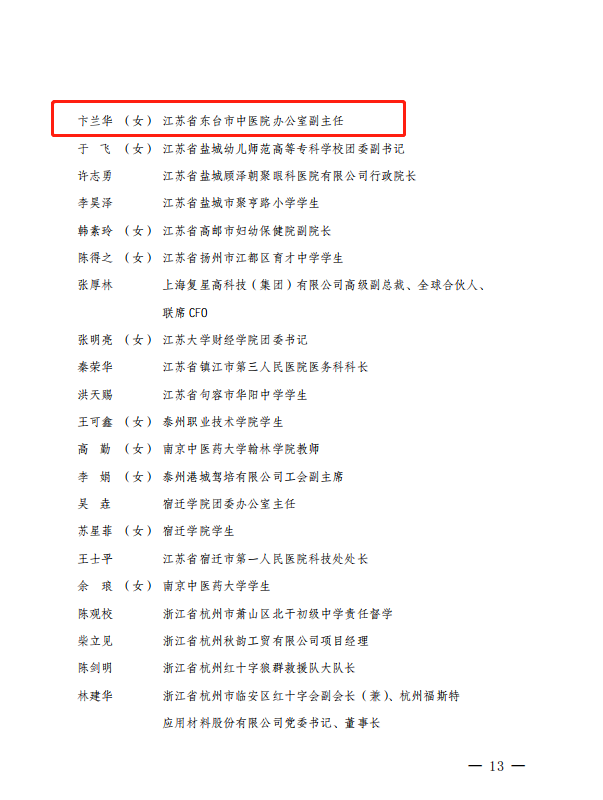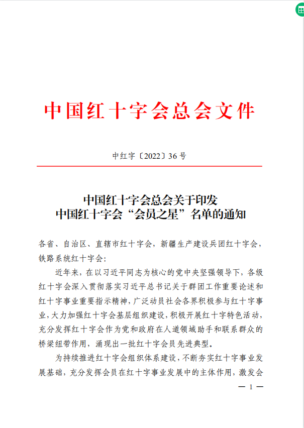 [盐城市]优秀东台1人荣获中国红十字会“会员之星”