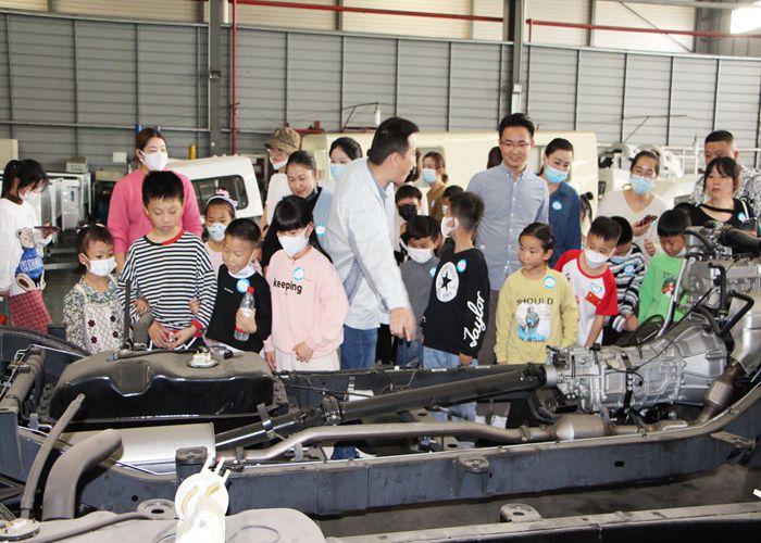 活动中,由卡威副总经理(志愿服务队指导员)胡海洋带领孩子们参观汽车制造车间,介绍了汽车的构造、涡喷消防车的作用与优势,并体验了刚下线的新能源小汽车。孩子们兴奋而好奇地听讲,争先恐后要求坐到汽车上去操控,他们智慧的小脑袋不断涌现出新奇的问题,志愿者大哥哥们也耐心为孩子们一一解答。