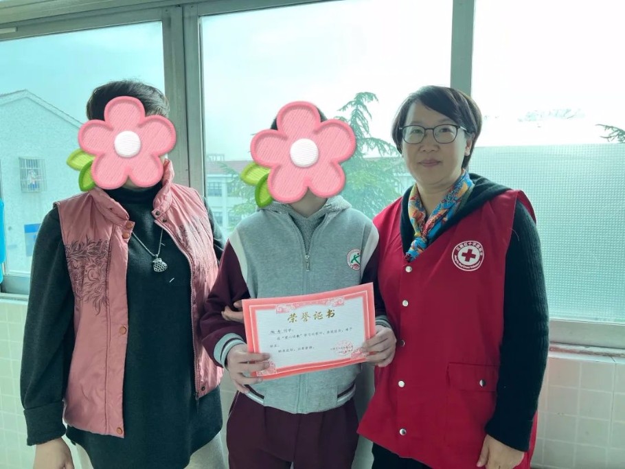 11月16日下午,江阴市长泾实验小学红十字会“爱心联盟 助残圆梦”教师服务支队来到重残儿童陶同学家中,为他举行了一场特殊的结业典礼。