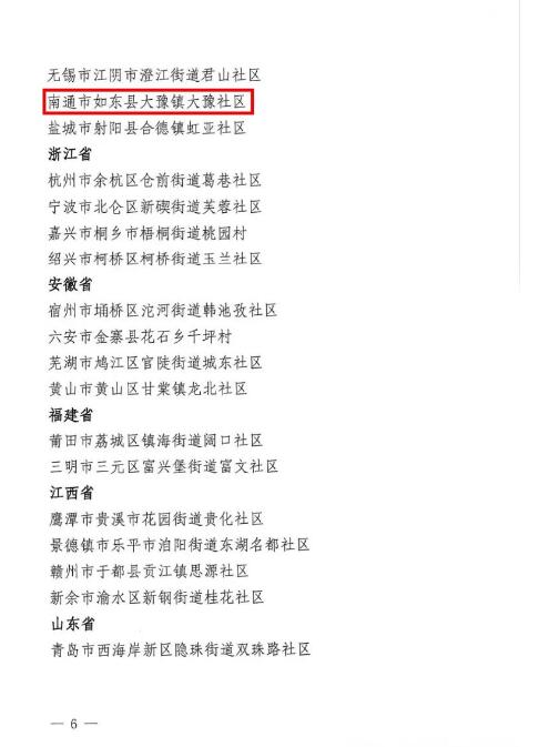 11月14日,中国红十字会总会发文表彰了一批“全国红十字模范单位”,如东县大豫镇大豫社区榜上有名、喜获殊荣。