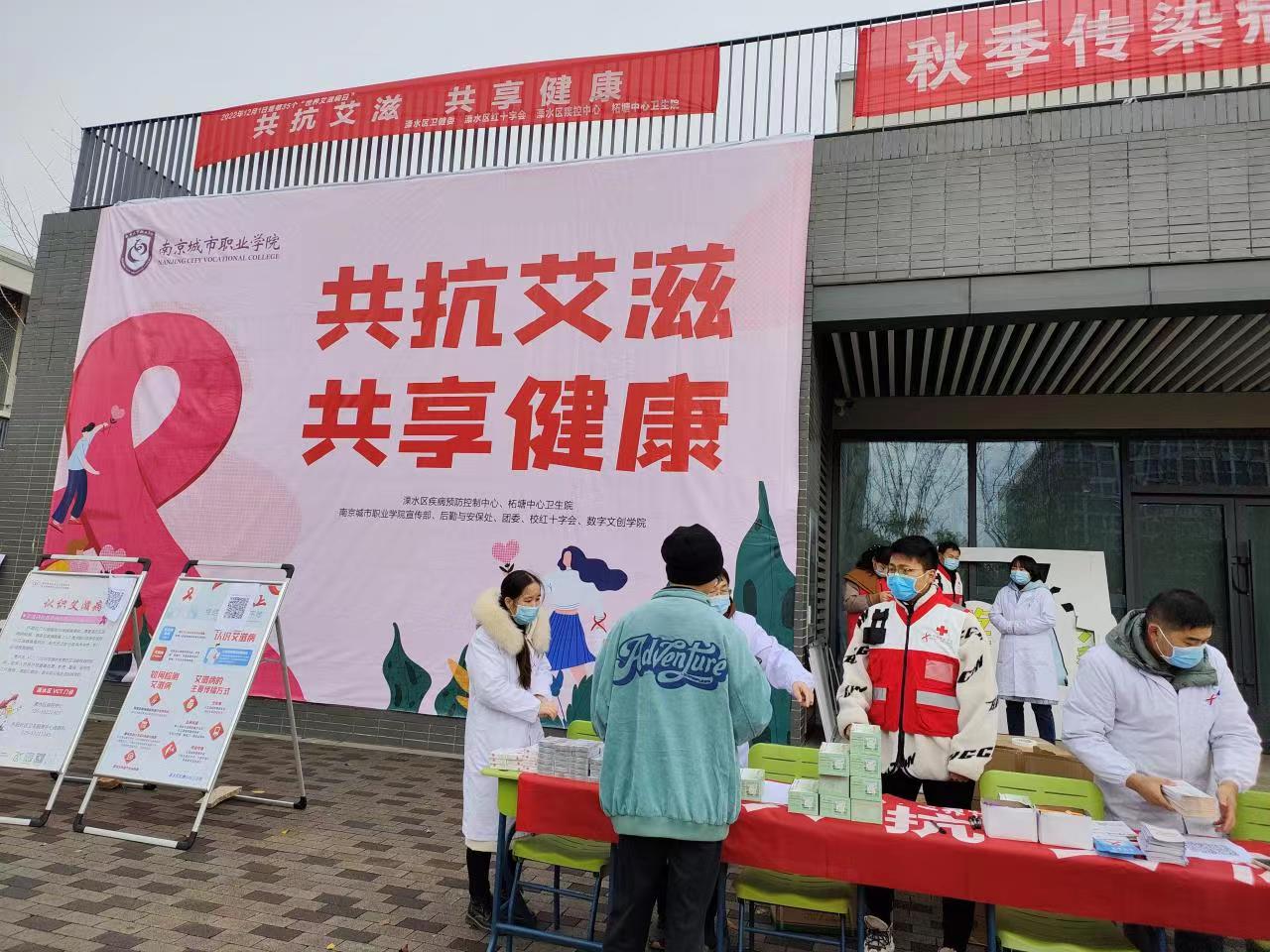 今年的12月1日,是第35个“世界艾滋病日”,主题为“共抗艾滋 共享健康”。为进一步增强学校艾滋病防治宣传教育的针对性、实效性,营造良好的社会氛围,溧水区红十字会联合区卫健委、区疾控中心、柘榶中心卫生院,在南京城市职业学院开展现场宣传及咨询活动。