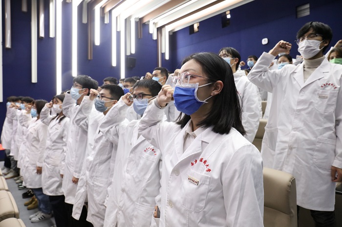 南京市红十字会党组成员、一级调研员郑海龙宣读了关于成立南京中医药大学遗体接受站的决定。南京市红十字会党组书记、常务副会长张敏和南京中医药大学党委书记程纯共同为接受站揭牌。学校医学院学生代表进行了医学生宣誓,以表达对从事医学事业的使命担当,并向遗体捐献志愿者致敬。