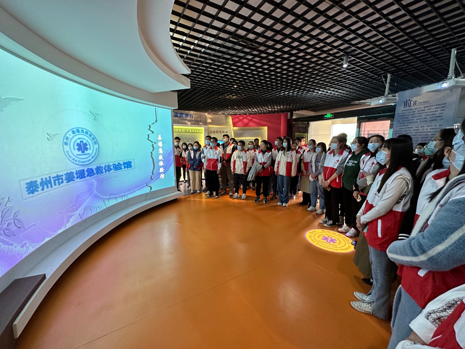 理论授课结束后,学员们集体参观了姜堰区急救体验馆,急救体验馆工作人员带领大家参观了家庭及个体安全、交通安全、电梯逃生、火灾消防、地震体验等模块区域,针对每个体验区的特点讲解相关急救逃生知识并现场进行操作示范。