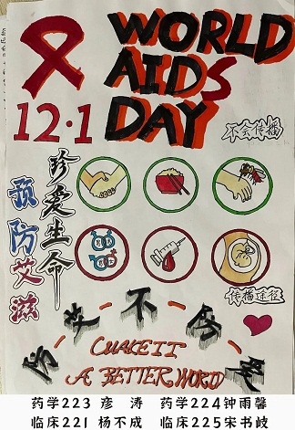 为迎接第35个世界艾滋病日,11月15日-11月25日,南通大学红十字会在通大启秀校区开展了“防艾宣传画”征集活动。学生志愿者们在校园内征集防艾宣传画,并通过投票评选出优秀作品,对优秀作品进行展示。