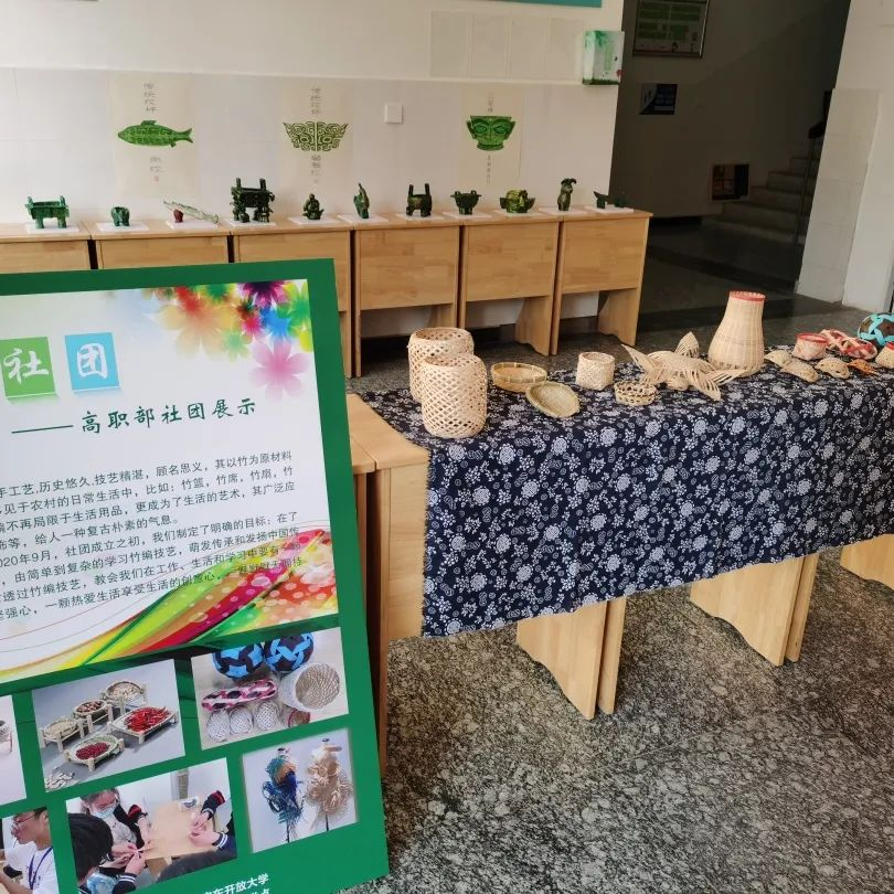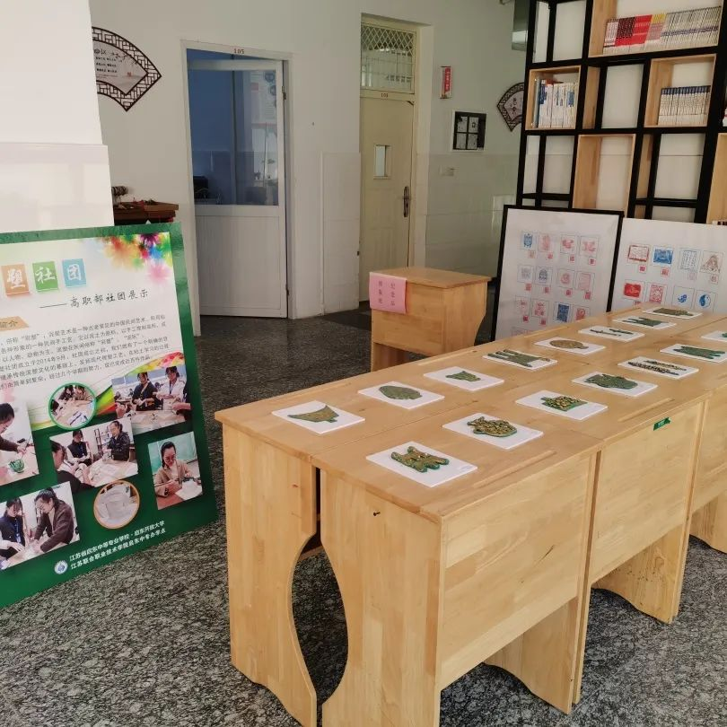 2022年12月7日下午,江苏联合职业技术学院启东中专办学点举办“传文化 铸匠心 学习二十大精神——技能传承中华优秀传统文化”社团联合艺术作品展。学生通过泥塑作品、绳编作品、竹编作品、建筑设计作品、绘画作品、篆刻作品等,抒发对党和祖国的歌颂与祝福,表达对优秀传统文化的热爱。