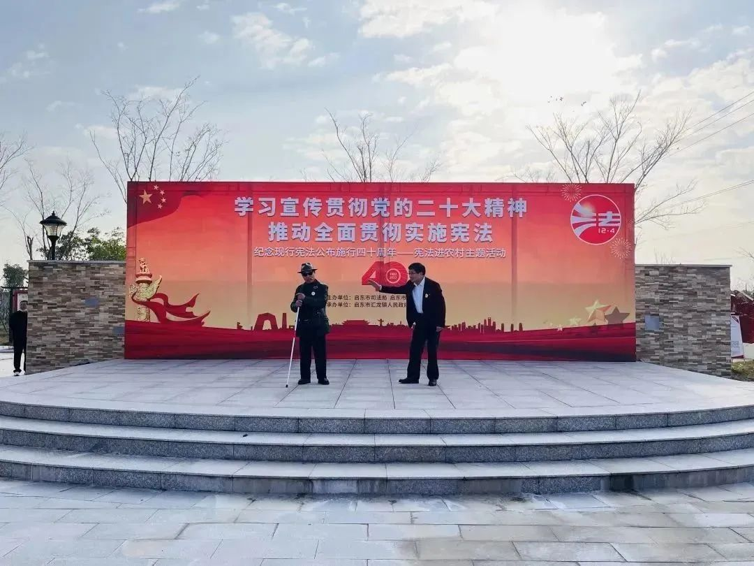 今年的12月4日是第九个国家宪法日,也是我国现行宪法公布施行四十周年。为进一步普及宪法法律知识,提高农民群众的法治意识,让宪法精神深入村居,启东市司法局、农业农村局、汇龙镇联合举办宪法进农村主题活动,将宪法送进汇龙镇临江村。