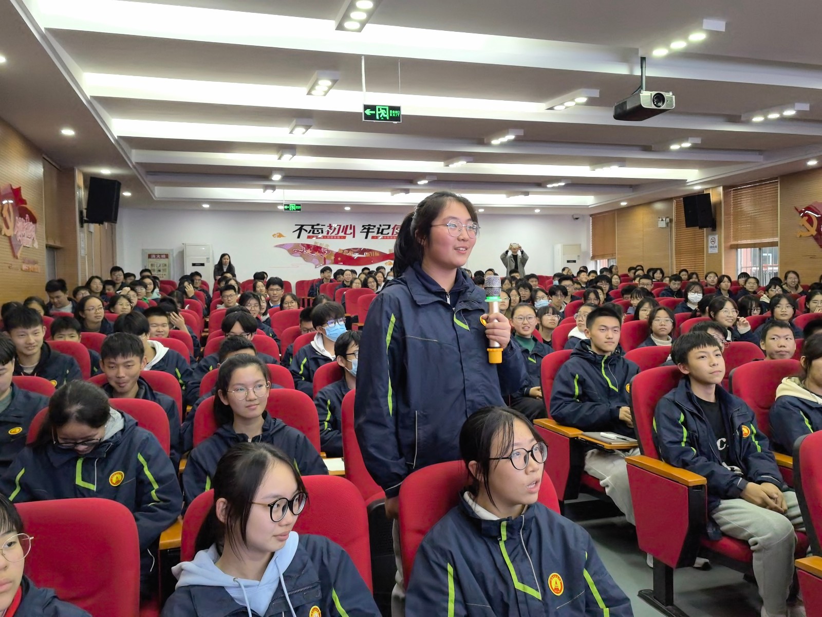 辅导前,潘老师以游戏“左右旋风”、“你划我猜”导入,调动学生的积极性,引导学生们认识情绪,明白情绪的重要性以及不良情绪的危害。随后,通过有趣的案例问答环节引导学生结合生活实例,利用情绪ABC理论来调节自己的情绪。在实践演练中,学生拓展了对情绪管理的认识,明白原来自己对事件的想法将直接影响自己的情绪。活动最后,潘老师通过“高能量姿势”、“放松与呼吸”、“冥想练习”等行之有效的调整情绪方式,指导学生在生活中用积极的思维对待发生的事情,塑造积极的情绪。讲座结束后,初三年级组长沈红霞老师结合讲座知识,告诉同学们情绪无好坏,每种情绪都值得被尊重和接纳,希望同学们能正视情绪,管理好情绪。
