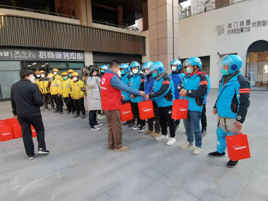 为深入学习贯彻党的二十大精神,更好地凝聚和服务新业态新就业群体融入城市参与基层社会治理,推动新业态新就业群体保供保畅和自我防护两手抓、两不误,12月19日下午,江阴市委组织部、江阴市红十字会以及江阴市交通运输局、江阴市市场监管局、江阴市邮政管理局等新业态新就业群体行业主管部门联合开展走访慰问活动,向全市外卖员、快递员、货车司机、网约车司机、网络主播等新业态新就业群体代表送上暖“新”防疫礼包,包括中药治疗汤剂、N95口罩、酒精喷雾、免洗消毒凝胶等防护物资。