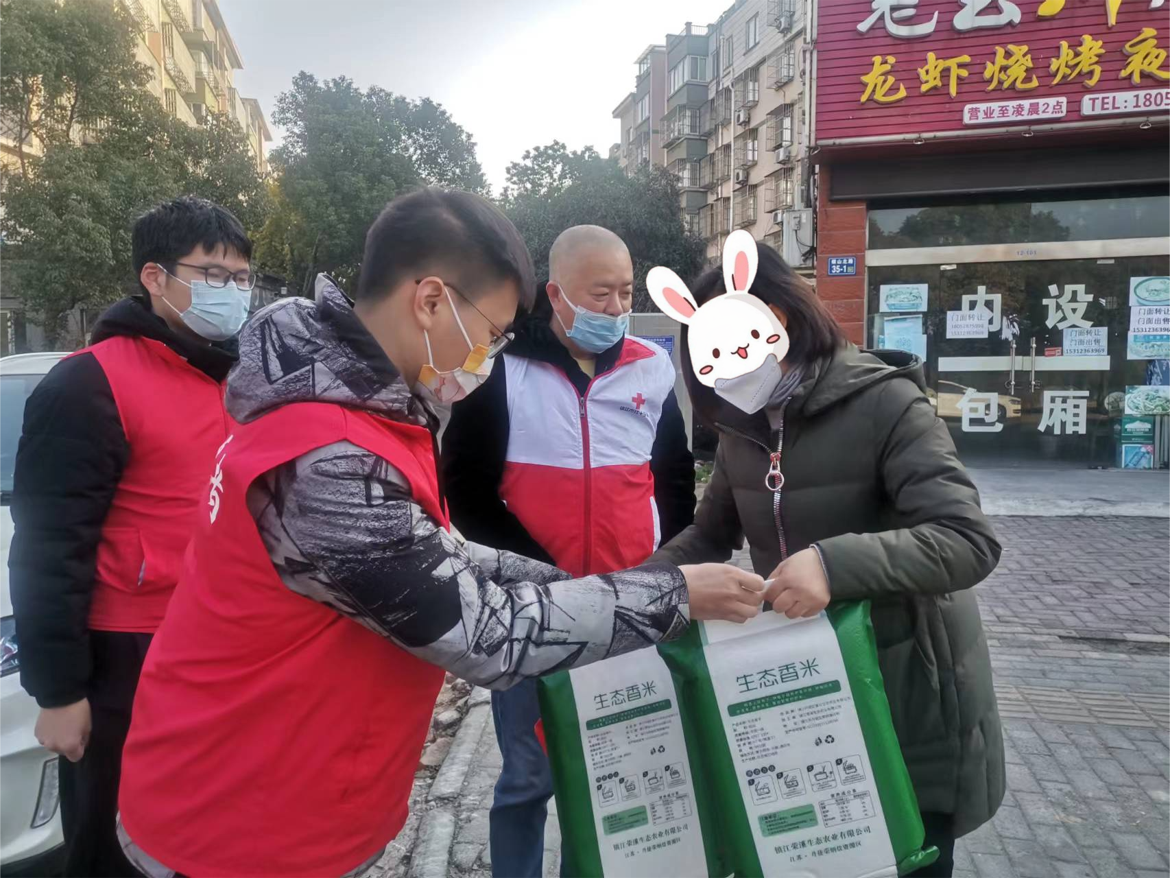 1月4日,镇江市红十字生命永恒志愿服务队携手润州区红十字会生命之光志愿服务队、江大医学院志愿服务队走访慰问遗体器官捐献者家属,为他们送去大米、温暖包。