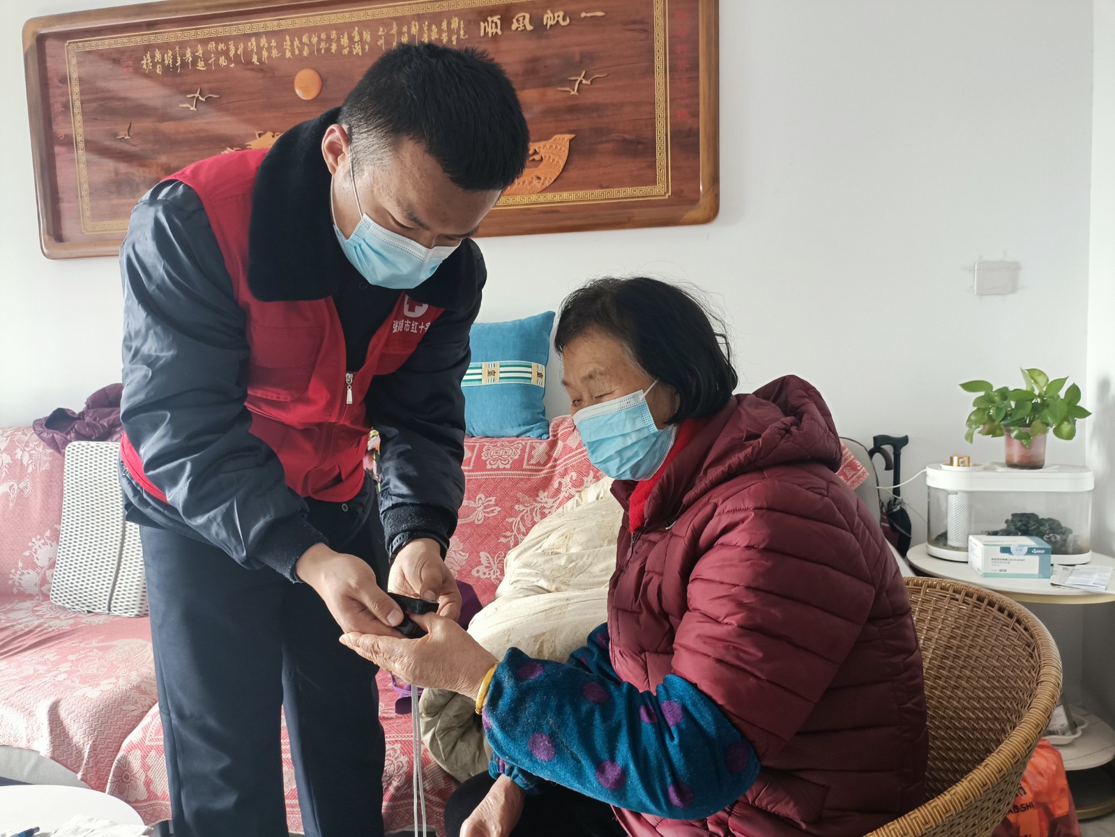在当前疫情下,按照《中华人民共和国传染病防治法》,新型冠状病毒感染从“乙类甲管”调整为“乙类乙管”,疫情工作重心从“防感染”转向“保健康、防重症”。为贯彻落实此项新政策,张家港市锦丰镇红十字会组织志愿者开展志愿服务,为辖区内老年人及时监测身体健康状况,消除部分老年人对“沉默性缺氧”的顾虑,切实提高居民健康意识。