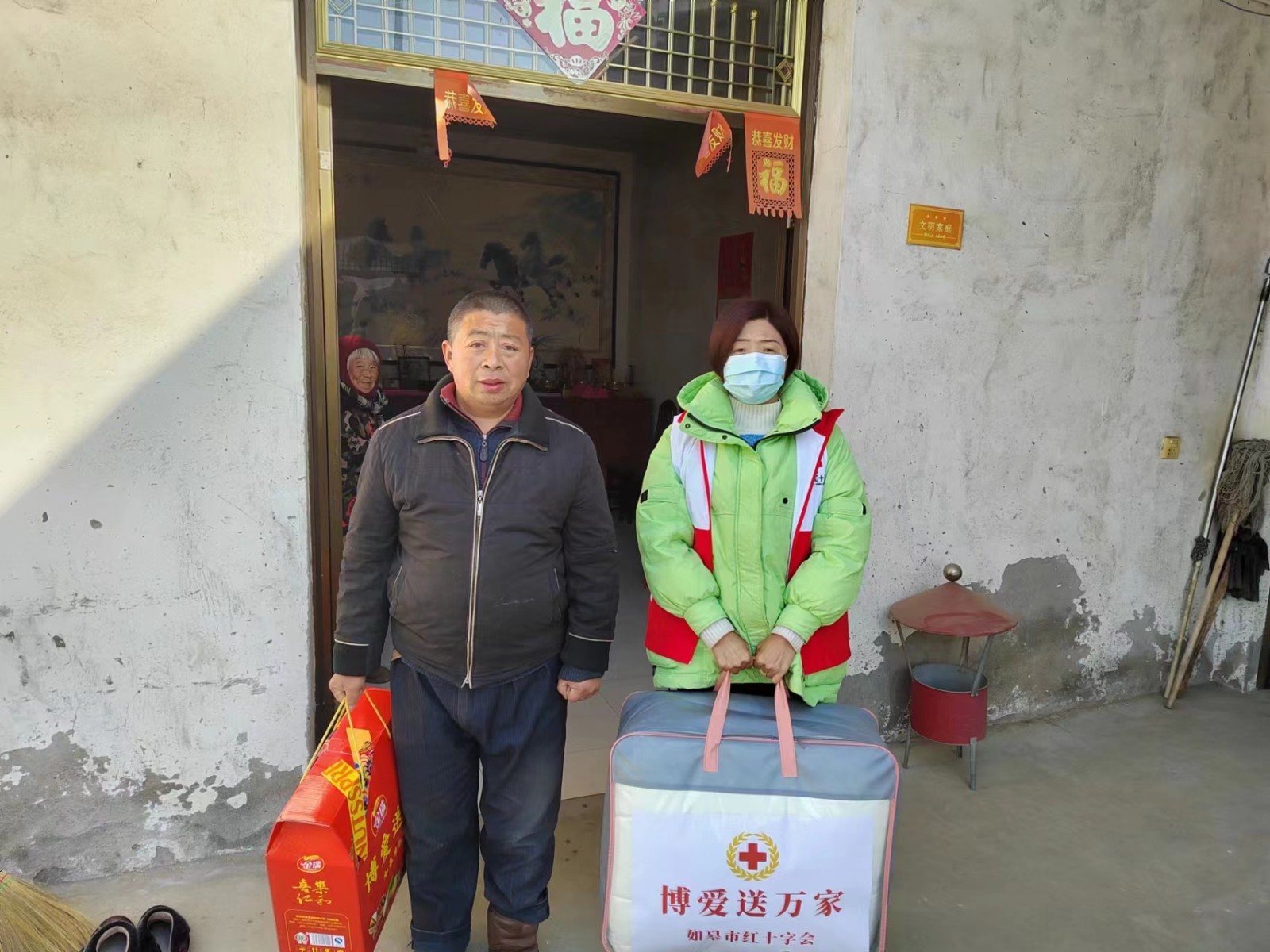 梅花吐蕊,新春将至。为了弘扬“人道、博爱、奉献”的红十字精神,在2023年新春佳节即将到来之际,如城街道红十字会面向困难群众开展“博爱送万家”新春慰问活动。各村居红十字会志愿者为36户低保、五保和困难家庭送去棉被、食品礼包等慰问品,并为他们送去新春的祝福,让这个特殊的群体在如城这个温暖的大家庭中共同欢欢喜喜过大年,红红火火迎新春。