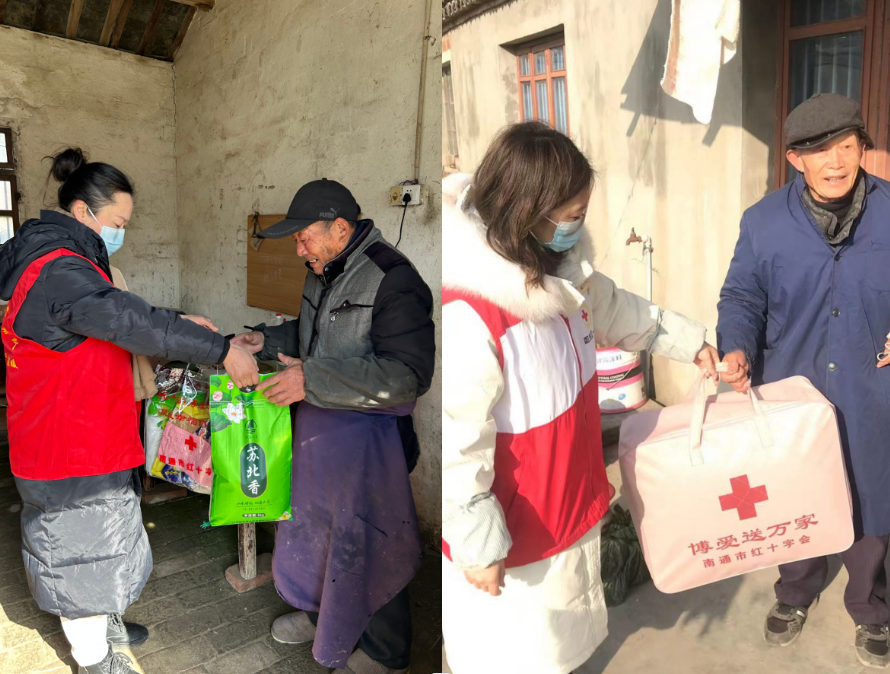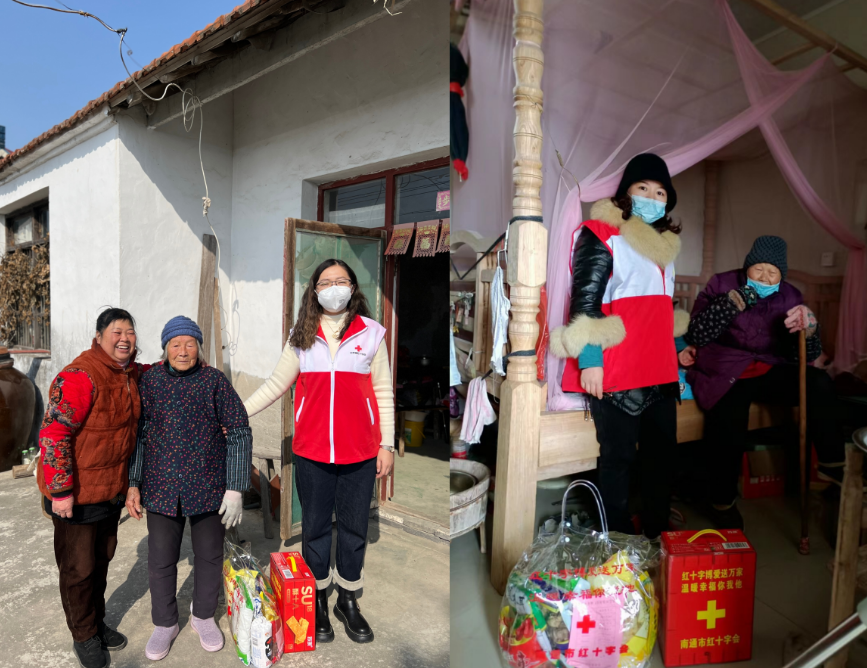 新春将至,为弘扬“人道、博爱、奉献”的红十字精神,把党和政府的关爱送到困难群众中去,1月10日,2023年如东县红十字会“博爱送万家”活动正式拉开序幕。全县16个镇(区、街道)红十字会和18家红十字“博爱家园”纷纷开展情谊暖暖、博爱为民的慰问活动。一份份帮扶解困慰问金、一批批人道救助慰问品(食用油、大米、点心礼包、年货礼包、棉被)通过红十字志愿者们送入困难对象百姓人家,在抚慰关心的同时询问疫情之下的身体健康状况,鼓励他们勇敢面对生活,让他们真真切切感受到党和政府的温暖、红十字的关爱。