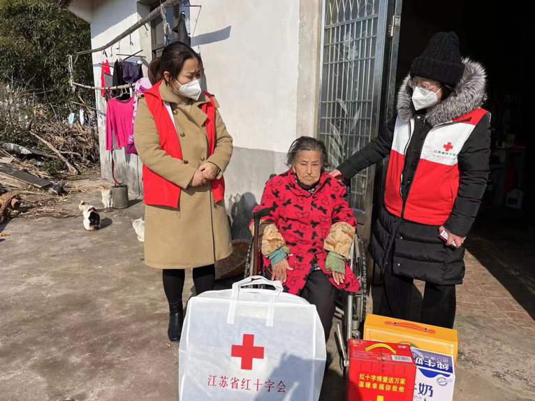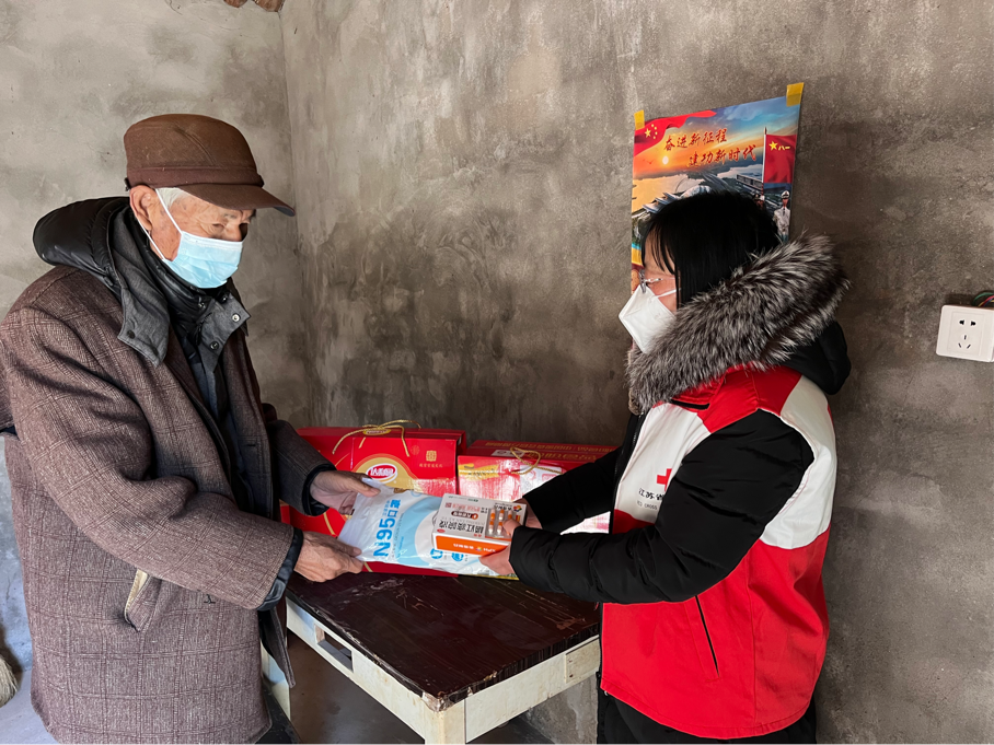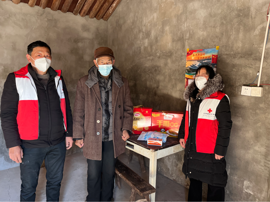 新年伊始,北新镇万安村博爱家园联合启东市红十字会开展“博爱送万家 新春暖人心”春节慰问活动。博爱家园志愿者们积极配合国家新的防疫政策和针对当前的极端天气在入户志愿服务时除认真宣传防疫措施(尽量避免去往人多的地方聚集、聚餐。多喝热水多锻炼身体,讲卫生及时消毒,出门戴口罩,就能在很大程度上避免感染的风险)、防冻方法外还主动帮助行动不便老人把自来水水表箱和室外的马桶做好保护措施,为他们送上感冒药、止咳糖浆、手消液、口罩等防疫物资,除此以外还与他们唠家常,问需求,送祝福,并为他们送上棉被,油和干货等新春慰问品。使他们深刻感受到党和政府对他们的关心和关怀。散养五保户丁金昌激动地说"还是共产党好啊!还是我们国家的政府关心老百姓的疾苦!"