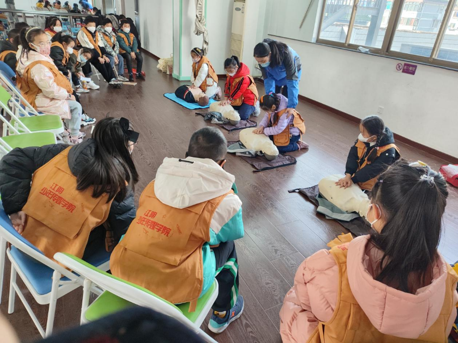 活动中,红十字应急救护培训师资为小记者们讲解了心肺复苏、创伤救护等急救措施在突发状况中的重要性,现场演示了心肺复苏、包扎止血等应急救护相关操作方法,手把手指导小记者们依次轮转实操 。