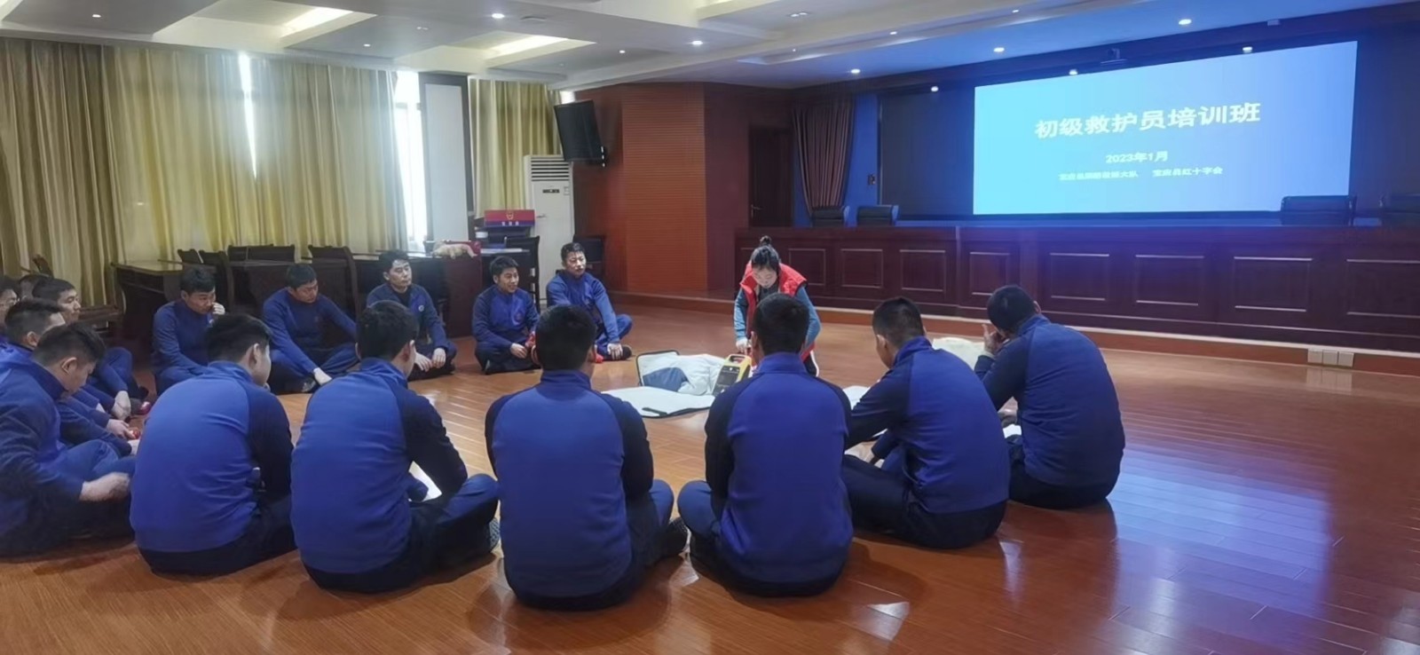 1月29日,农历正月初八,大街小巷年味还未散尽,宝应县红十字会新春第一堂应急救护培训课,在宝应消防救援大队三楼会议室正式开讲,40名消防官兵身着制服,整齐端坐,全神贯注地听着培训师的讲解。突然,一阵刺耳的警铃响起,全体学员不约而同地跑出了课堂,只留下培训师一人在台上惊鄂万分。