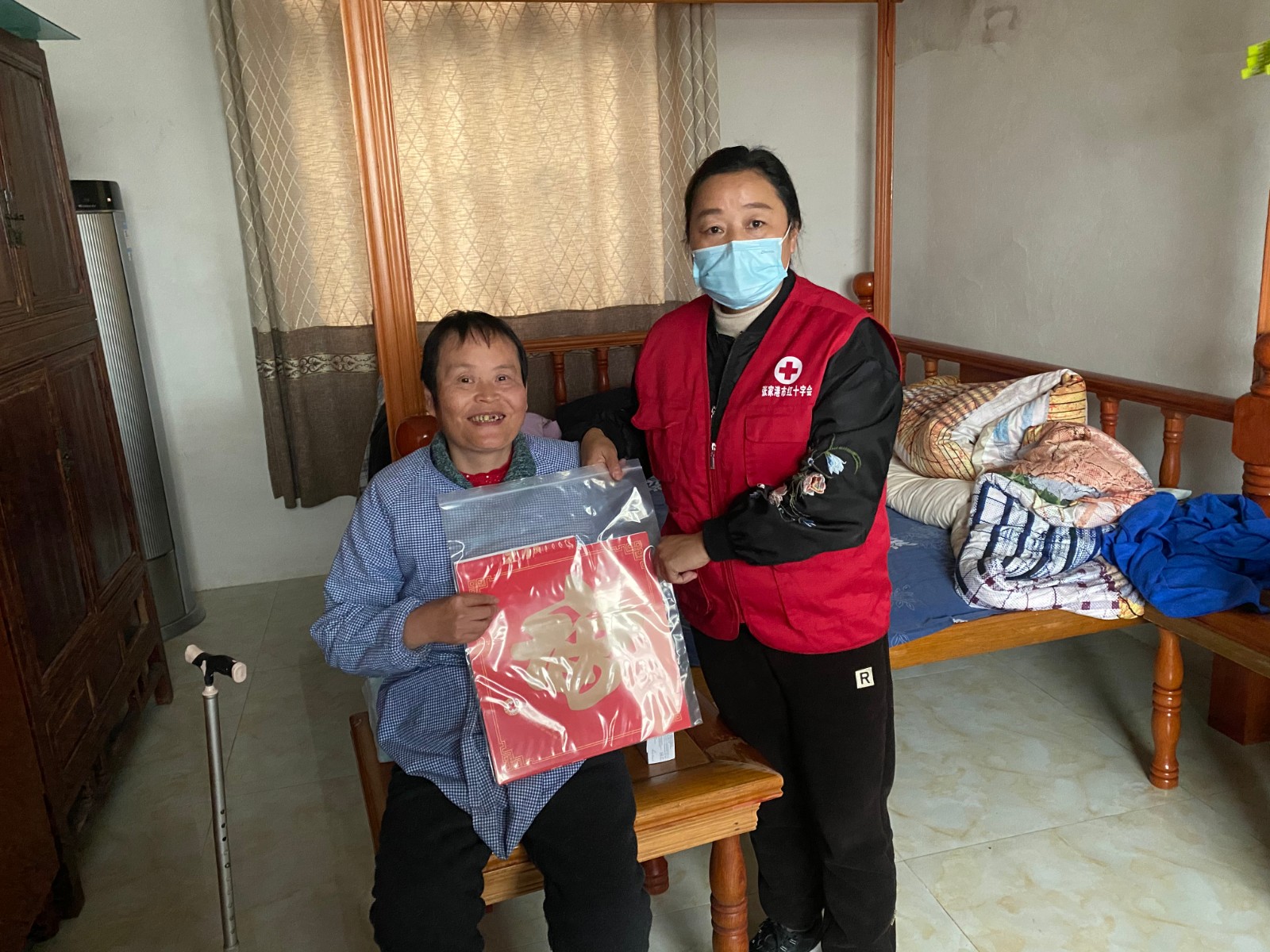 为达到精准帮扶目的,此次活动经过前期摸底调查,严格履行发放程序,在新春来临之际为困难群众送去关心、关怀。前期我们红十字会志愿者了解到他们的实际情况,符合我们本次慰问的要求,我们红十字会志愿者为他们送上600元慰问金和一对春联,提前为他们送上春节的祝福。同时叮嘱他们还是要戴好口罩,过一个平安、祥和的春节。