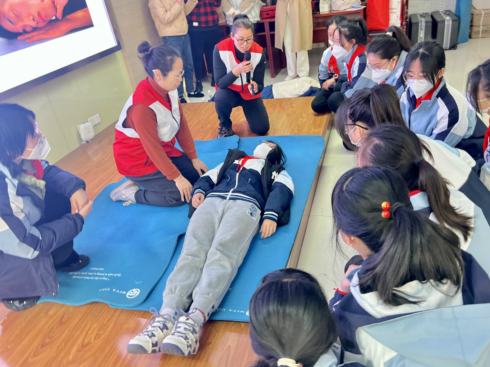 课中,精彩的ppt以及止血包扎带、安妮模型、AED等多样教学训练器材,结合生动细致的讲解和互动环节,把活动推向了高潮,使得授课内容丰富又趣味盎然。