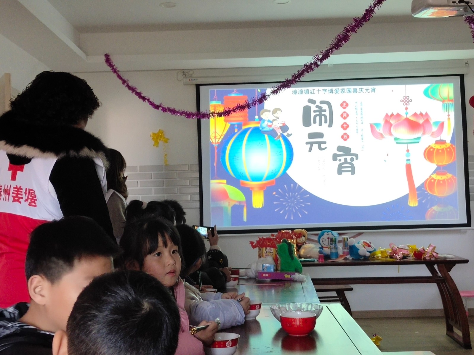 姜堰区溱潼镇城北社区红十字博爱家园组织开展元宵节活动,活动现场志愿者与小朋友一起制作灯笼,一起制作汤圆并食用。