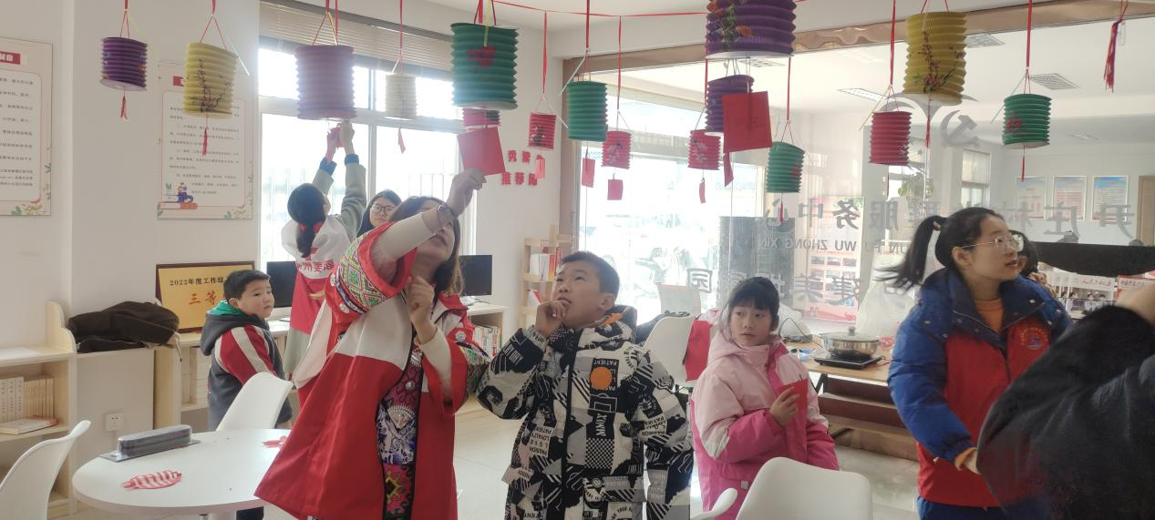 上午9时,书屋内一片热闹景象,各式各样的灯谜吸引了小朋友们的踊跃参与,参与活动的小朋友看着一张张悬挂的谜语,大家聚在一起猜灯谜你一言我一语,在一个个灯谜底下穿梭着,时不时手里比划着,或互相探讨,共同体验猜灯谜带来的乐趣。本次谜语的内容涵盖了传统文化、精神文明、科普保健、等方面,很快一条条谜语就被小朋友们猜出,兑换成一份小小的礼物。在猜灯谜活动中体验别样的乐趣,细细品味浓浓元宵节的团圆和喜庆。