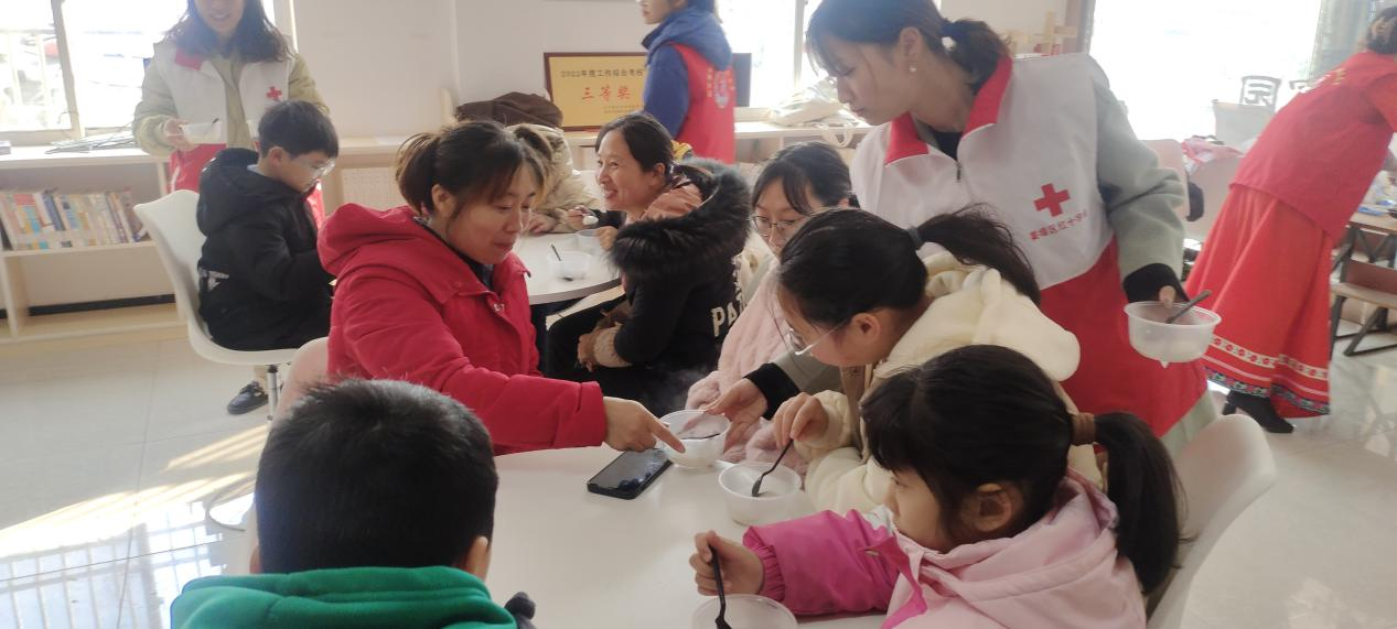 猜完灯谜后,红十字会志愿者一起把煮好的汤圆分发给在场的小朋友和家长,大家吃着热气腾腾的汤圆,共同感受元宵佳节的独特魅力,现场其乐融融。