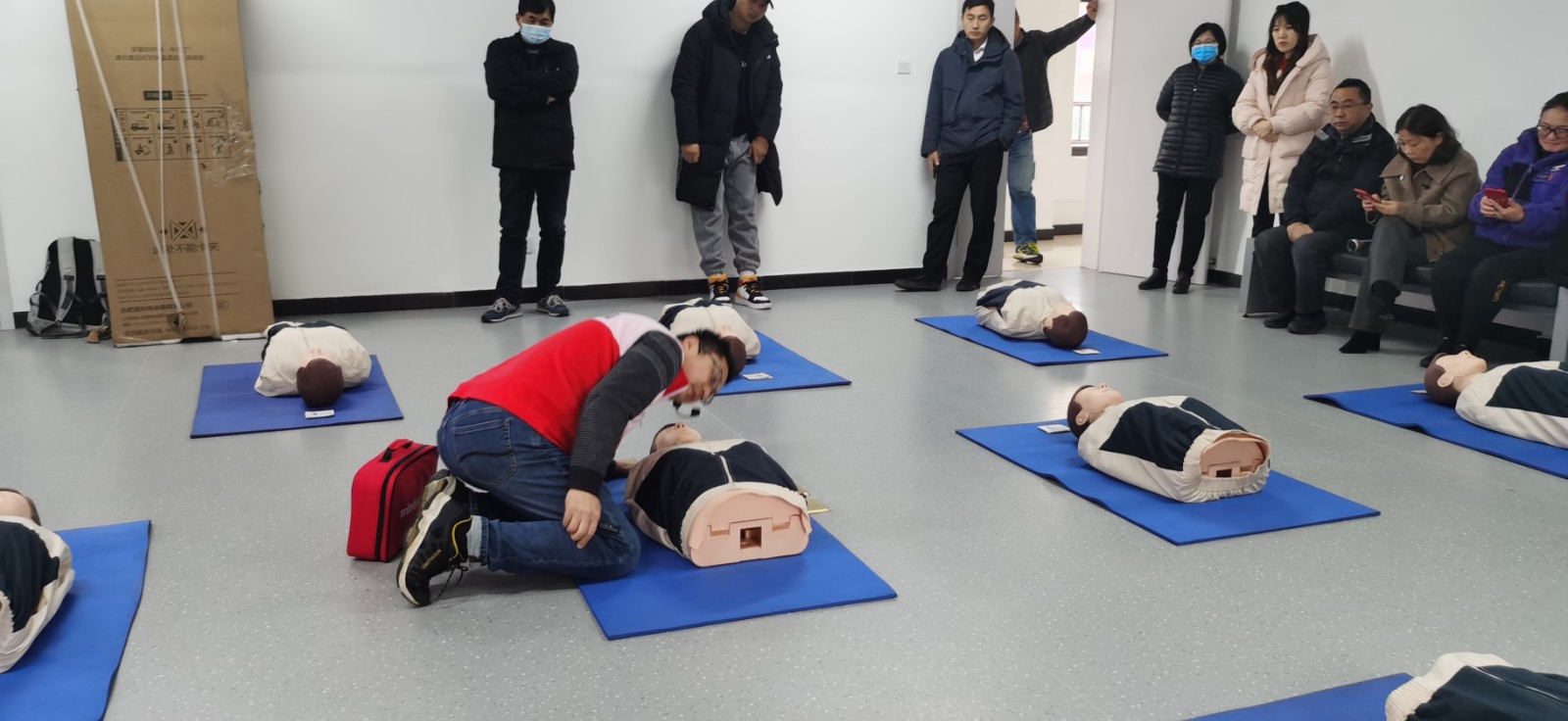 培训现场的红十字会老师,向参训人员传授心肺复苏操作和自动体外除颤器(AED)的使用,气道异物梗阻急救法(海姆立克急救法)操作,参训人员仔细听讲,认真观察,并主动参与互动和模拟练习,形成了良好的互动氛围,培训时长4课时,共计180分钟。
