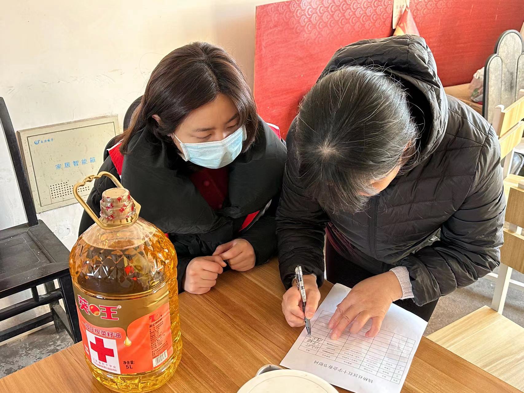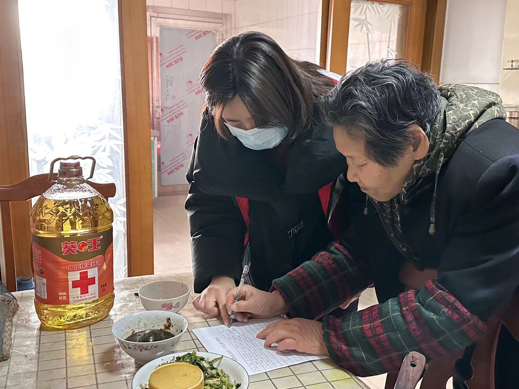 社区红十字会志愿者登门拜访,为困难家庭送上红会救助物资(棉被及食用油),以及新春的慰问与祝福。与困难群众拉家常、问冷暖,了解他们的家庭情况及身体状况;鼓励他们树立信心,克服苦难,保持健康向上的心态;聆听他们的心声和需求,排忧解难,同时红十字会还为因病因残致贫、生活困难的救助对象申请了人道救助资金。