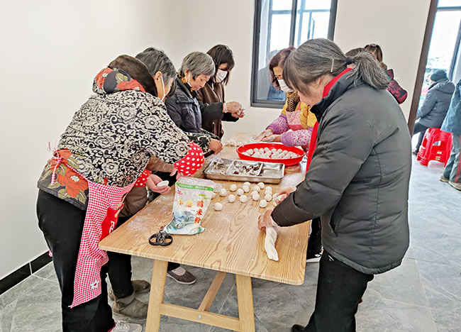 正值元宵佳节,义诊结束后,工作人员拿出了提前准备好的糯米粉、豆沙馅,邀请多位老人一起包汤圆,大家一边揉面团、包馅料、搓汤圆,一边聊着邻里家常。在一片欢声笑语中,一个个白白胖胖、团团圆圆的汤圆被整齐地放在盘中等待下锅……不一会,一碗碗热气腾腾的汤圆就被端上了桌。老人们吃着自己制作的香甜软糯的汤圆,脸上洋溢着幸福的笑容。