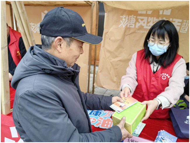 红十字志愿者现场为广大群众免费测量血压,对目前阶段疫情防控注意事项及健康知识进行科普宣传,对常见老年病进行解答;另外,红十字志愿者们还向广大群众发放健康礼包、疫情防控和应急救护宣传彩页,详细讲解心肺复苏流程等应急救护知识,同时倡导每个人当好自身健康第一责任人,共同注重身心健康管理,学习和掌握传染病、慢性病等防治知识和健康防护技能,合理安排工间休息和锻炼,养成良好的健康行为和卫生习惯,合理膳食、适量运动、戒烟限酒、心理平衡,以健康的体魄、饱满的热情、乐观的心态投入工作中。