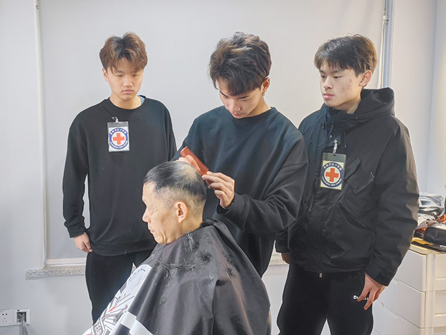 负责带班的红十字志愿者苑文豪参加博爱家园理发服务已多年,早与受服务的居民们相熟,大家对这个 22岁的青年人称赞有加。几个心细的好婆看到小苑下巴尖了、面庞瘦了,赶忙询问原因。小苑一面手上忙碌着,一面告诉好婆是因为春节前感染了新冠肺炎。于是好婆们都要他注意休息,保养身体。一句句关切的问候,让这个独自在常熟打拼的河南小伙心中涌起一道激动的涟漪。小苑说,自己服务的对象,大多像他的爷爷、奶奶,和蔼可亲。一定要为他们提供良好的服务,不辜负公司领导和红十字会的信任,居民的期望。