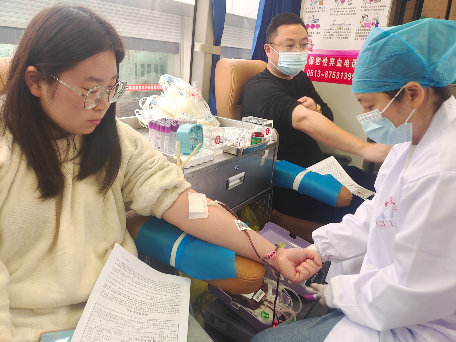 “首献萌新”陈曹萌说,首次献血,既紧张又激动,一想到能为有需要的群众提供帮助,就十分有意义。