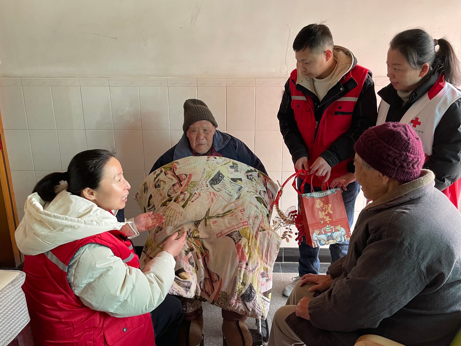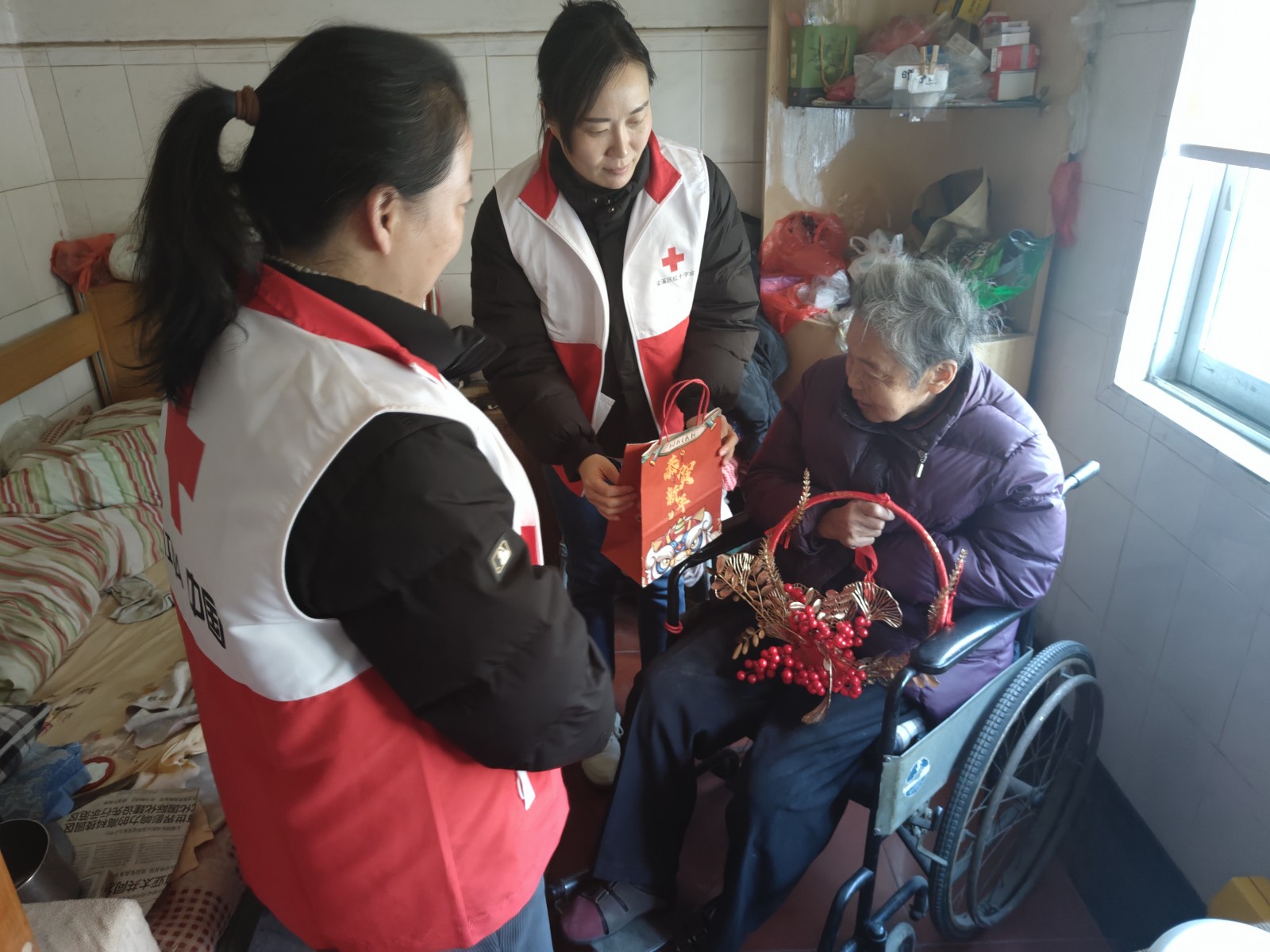 年宵花环象征着吉祥与喜庆。在老师的指导下,居民和孩子们体验了年宵花的新鲜玩法,发挥自己的奇思妙想,用红色的冬青,金色的银杏叶、绿色的尤加利叶等,创作出了独一无二的年宵花环。在社区红十字志愿者们的带领下,居民们带着亲手制作的年宵花环和元宵,走访慰问了辖区内90岁以上的高龄老人,传递 “人道、博爱、奉献” 的红十字精神。在细心询问他们的身体情况、生活近况中,让老人们感受到家的团圆气息和社区大家庭的温暖。