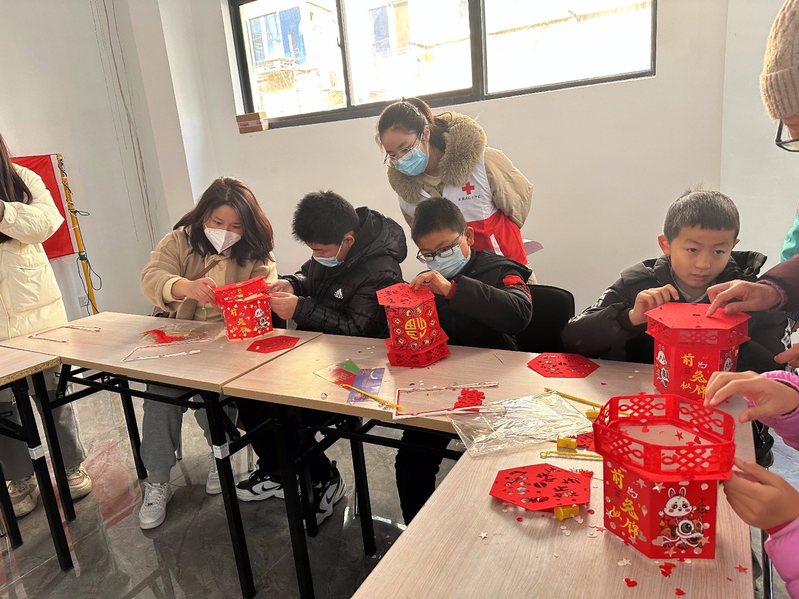 活动开始,红十字志愿者将制作材料分发给小朋友们,并逐步讲解制作过程及注意事项,在老师的耐心指导下,孩子们小心翼翼地进行剪裁、折叠、粘贴,家长在一旁细心协助。不一会儿,一个个漂亮的兔年花灯展现在我们面前,一张张笑脸在花灯的映衬下,充满了自豪。在欢声笑语中,热气腾腾的元宵也出锅了,社区朱书记亲自将汤圆送到了居民的手上,甜到了居民的心里。