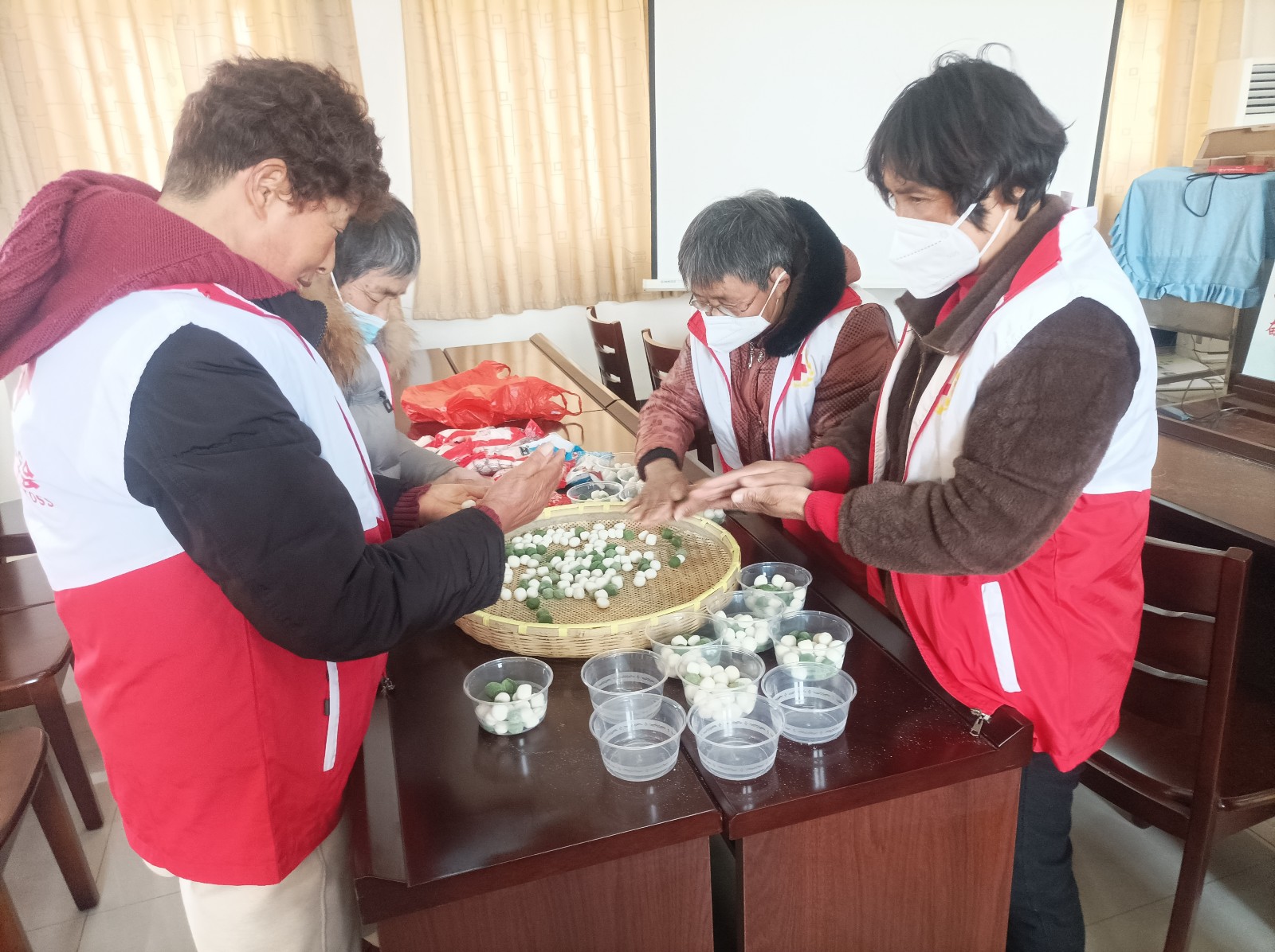 杨市社区组织红十字志愿和居民们一起包汤圆,送到社区独居老人、低保户家中,让他们也感受元宵节的温暖和快乐。