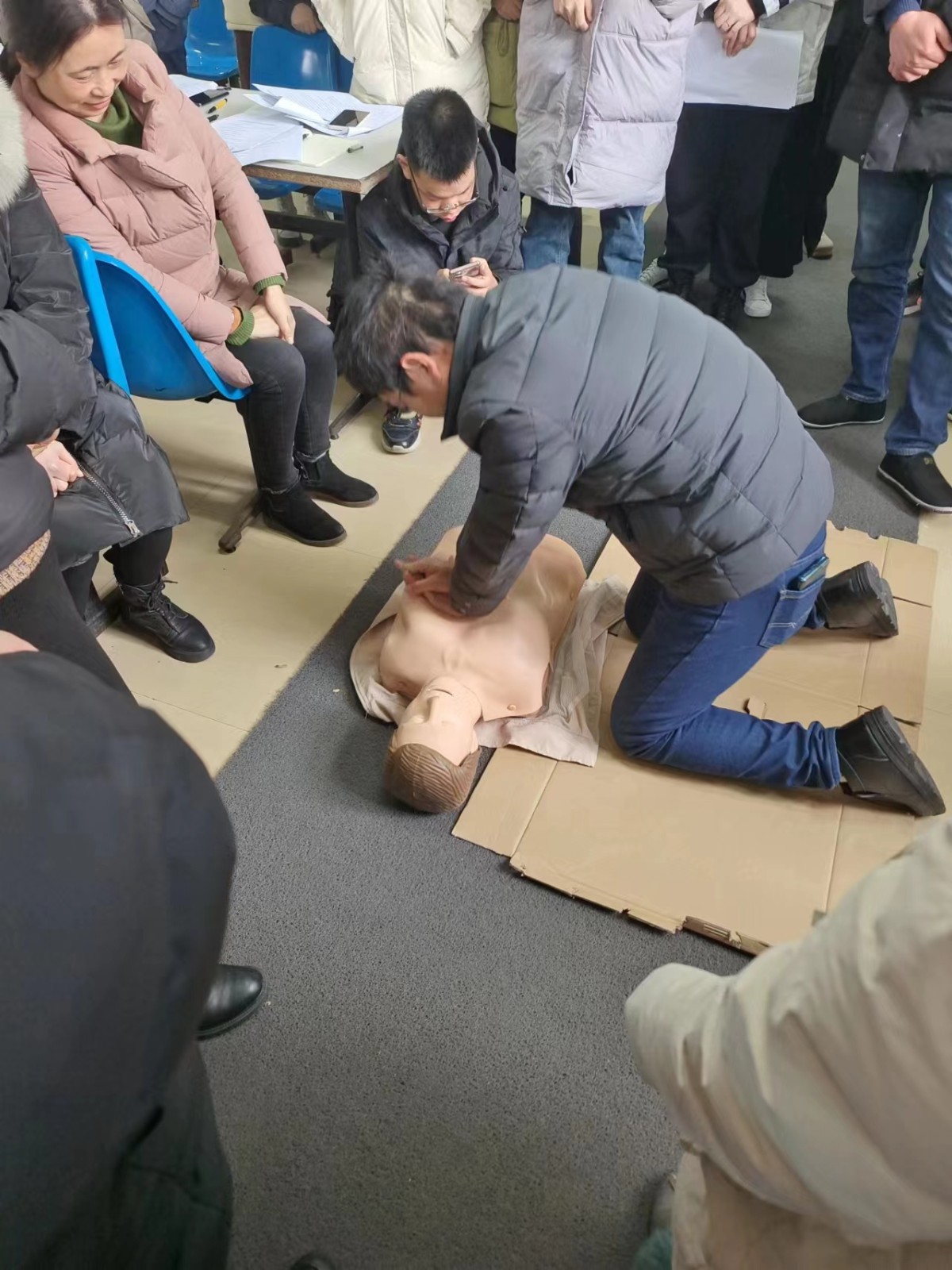“在心肺复苏的过程中,人工按压与人工呼吸的比例是30:2,也就是进行30次胸外按压之后要给予2次人工呼吸,5个循环后,检查患者生命体征……”来自泰兴市红十字会应急救援队的马老师通过现场应急救护理论讲解、实操技能演示互动等内容,向学员传授心肺复苏及自动体外除颤仪(AED),创伤救护、意外伤害及突发事件处置等红十字救护员技能。现场氛围热烈,参训人员积极参与互动演示,表示收获颇多。