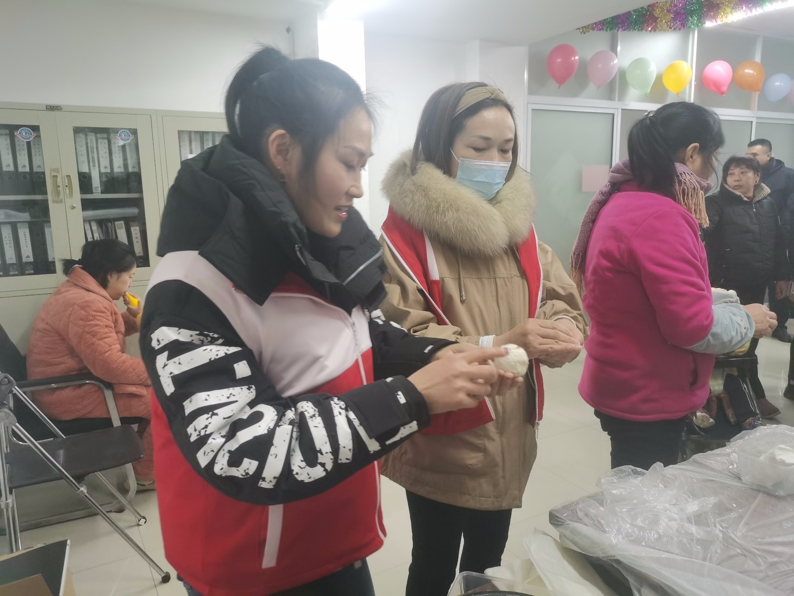 吃过午饭,红十字会志愿者们同物业工作人员就准备了起来,在活动室里粘上气球,挂上彩带,铺好一次性桌布,等待居民朋友的到来。活动现场,大家围坐成一圈,分享熟知的元宵节故事,讲解了从古至今元宵节的来历及变化发展,让居民感受到了浓浓的节日氛围,加深了大家对传统佳节元宵节的认识。接着,大家开始包汤圆。拿出了准备好的糯米粉和各色馅料,撸起袖子,和面粉,放馅料、捏造型,你一言、我一语地有说有笑,聊着过年期间的趣事。现场气氛浓烈,欢声笑语不绝于耳。一碗碗汤圆暖热了现场,也让大家的内心甜了起来。