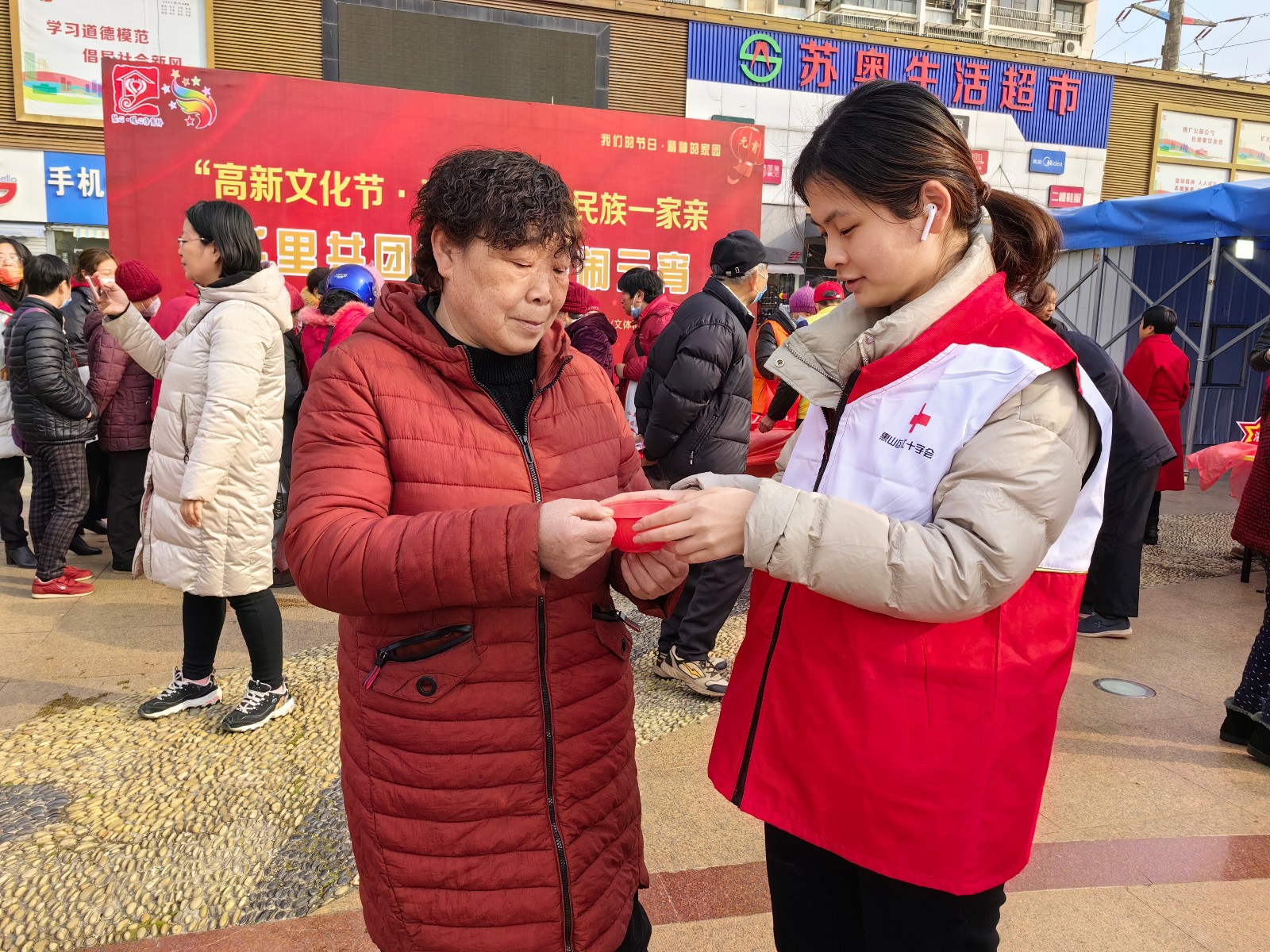 活动以喜气的音乐和热闹的空竹表演作烘托,在龙之韵广场顺利拉开序幕。辖区多名少数民族人士受邀参加游园活动,人人参与并乐在其中。“吃汤圆,吃春卷咯~”随着一声吆喝,白白胖胖的汤圆冒着热气出锅了,炸得香喷喷的春卷,看着就让人垂涎欲滴。居民们有序地排起了队伍,领取汤圆和春卷:“这个春卷炸的很好吃,我已经连吃了两个。等会,我还要带着孩子去学做春卷。”居民徐女士开心地说道。在现场,还有不少居民带着孩子,在红十字志愿者的指导下一起学做汤圆和春卷,体验了一把手作的乐趣。