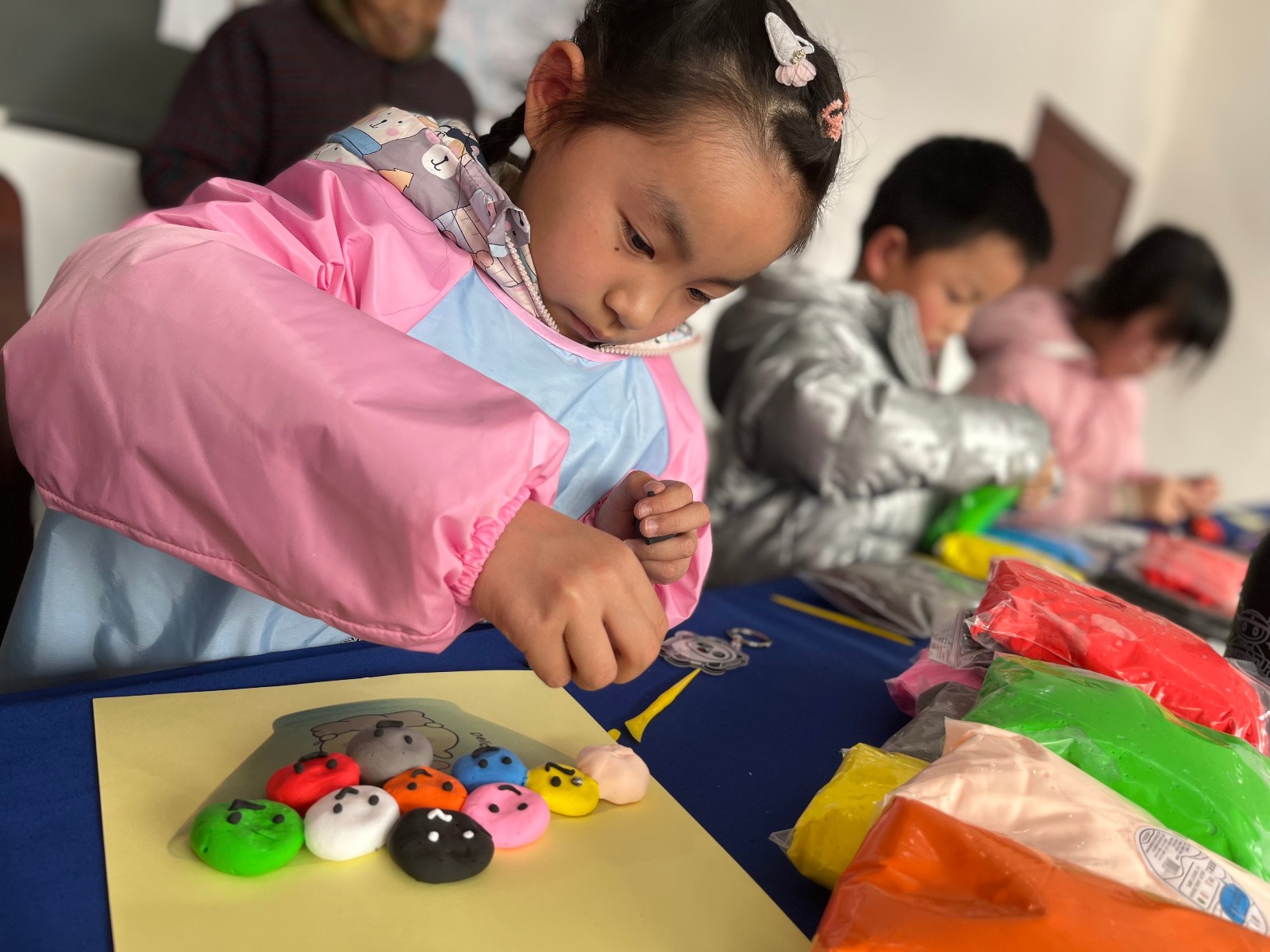 “心灵手巧”让我们一起来制作一碗“开心元宵”。一场别开生面的DIY手工制作活动正在进行,孩子们欢聚在一起,专心致志搞起创作来,小小黏土,揉出创意,这个活动是捏自己喜欢的小汤圆,孩子们在红十字会志愿者老师的指导下,拿了几团黏土,学习了搓、捏、拧、揉的技能,再在汤圆的基础上进行加工,“色泽雪白、圆溜溜、小巧玲珑、五彩斑斓”的小汤圆做成了。今天的汤圆最漂亮,是最美的劳动成果,孩子们不仅动手制作了小汤圆,而且还吃到了社区为大家准备的汤圆,大家一起煮汤圆、吃汤圆,香甜的汤圆吃在嘴中,也甜到了孩子们的心里。